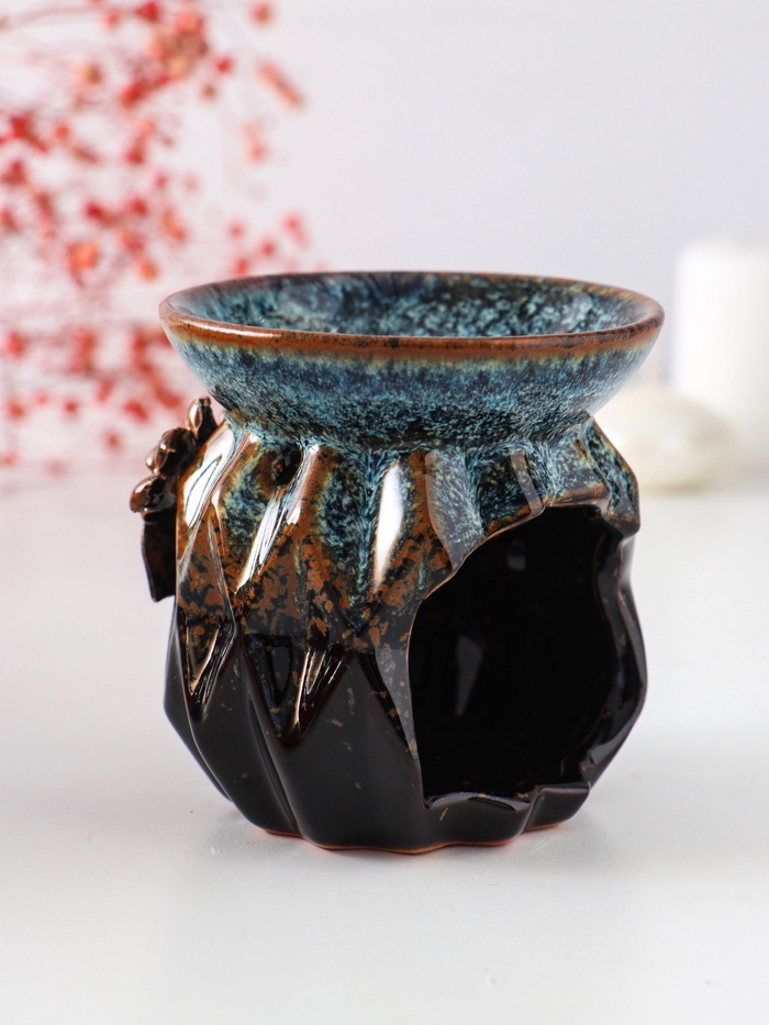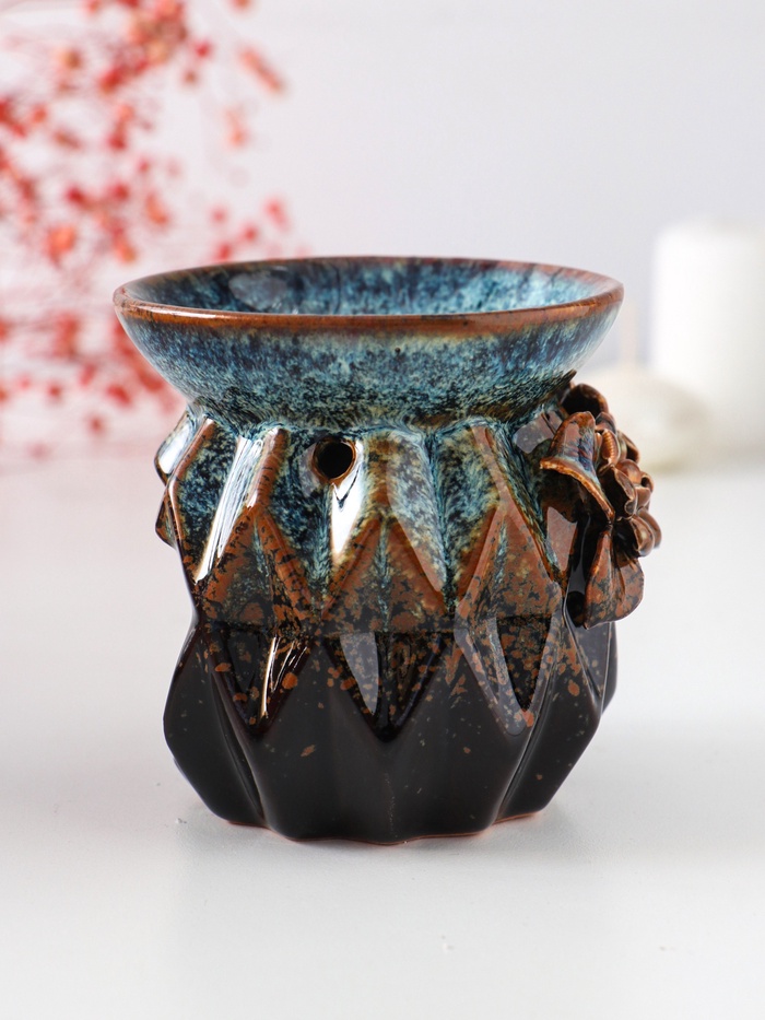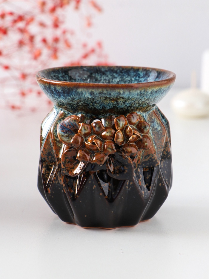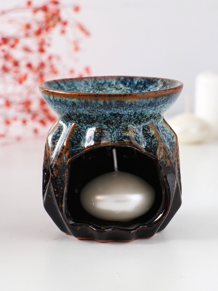 Аромалампа для эфирных масел «Узоры и рельеф», керамика, коричневая, 8×8×8.4 см 6 фото