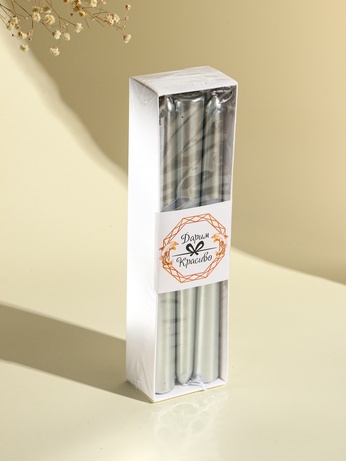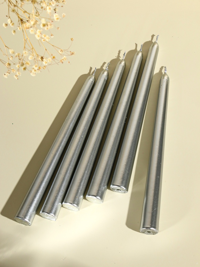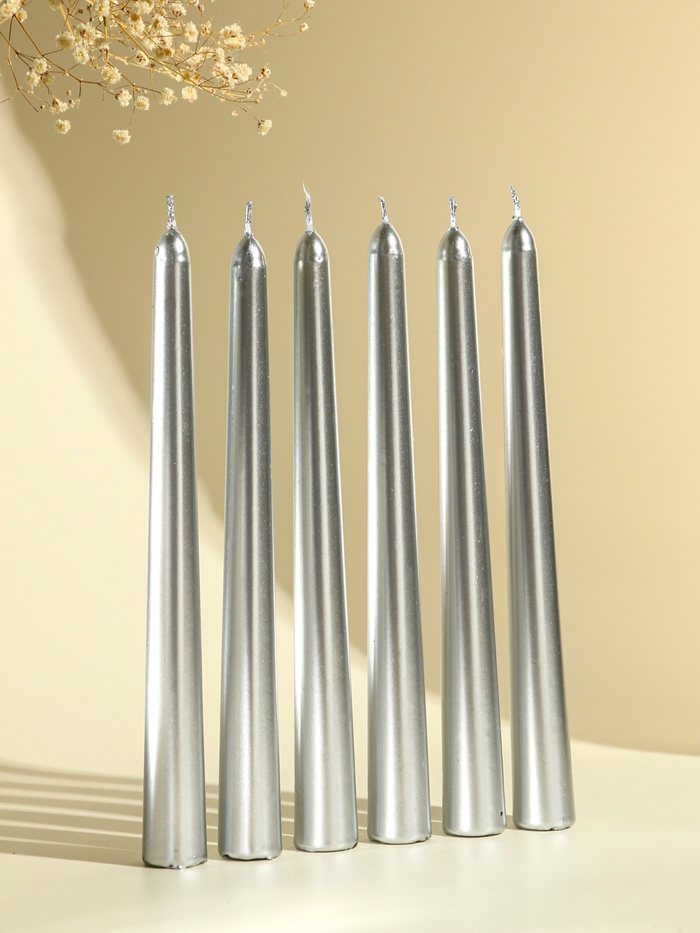 Набор свечей античных, 1.9×20 см, 6 шт., серебряный металлик 4 фото