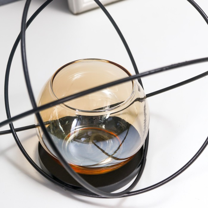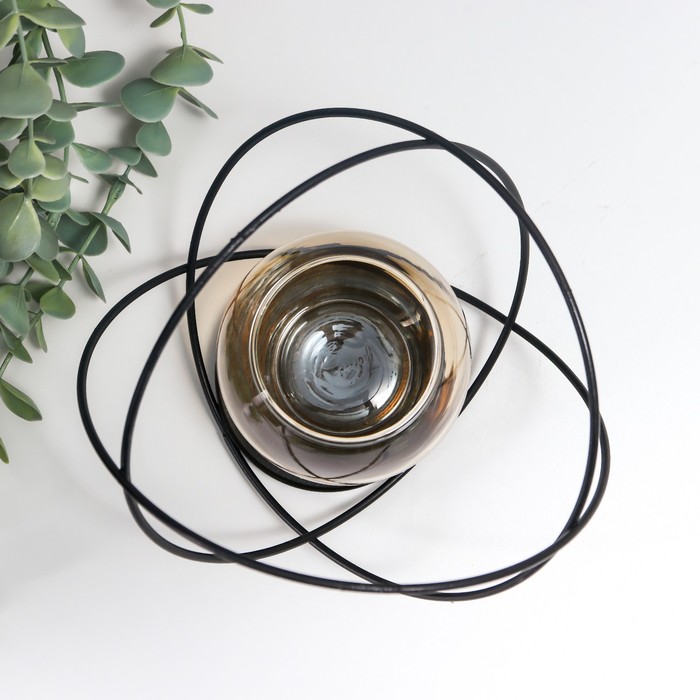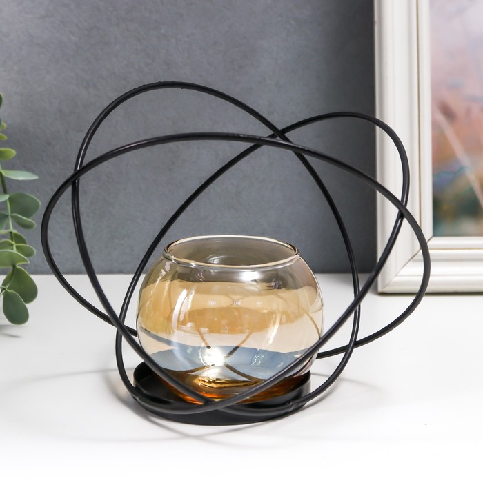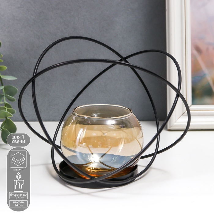 Подсвечник на 1 свечу «Лофт. Сплетение колец», металл, стекло, чёрный, 14×17.5×11.5 см 4 фото