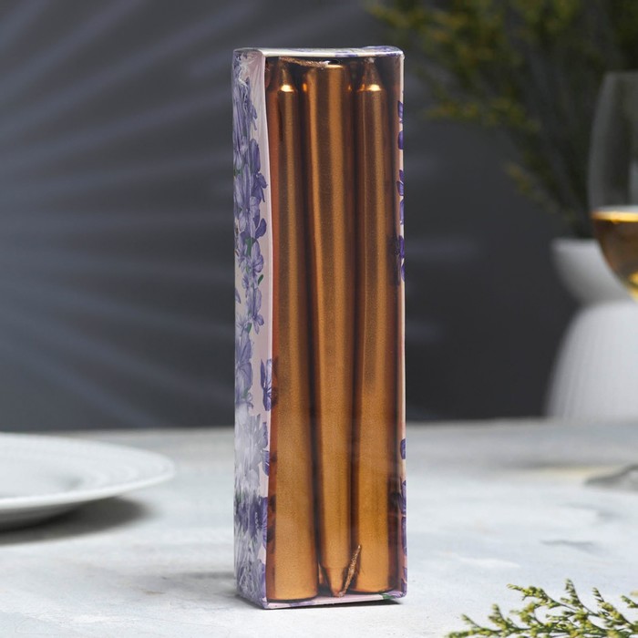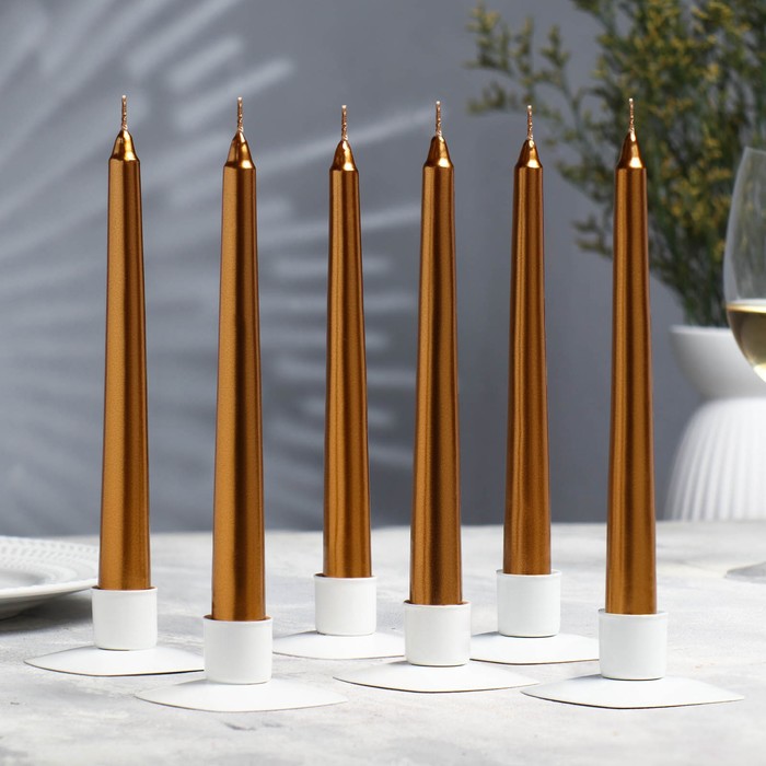 Набор свечей античных, 1.9×20 см, 6 шт., кофейно-золотой металлик 3 фото