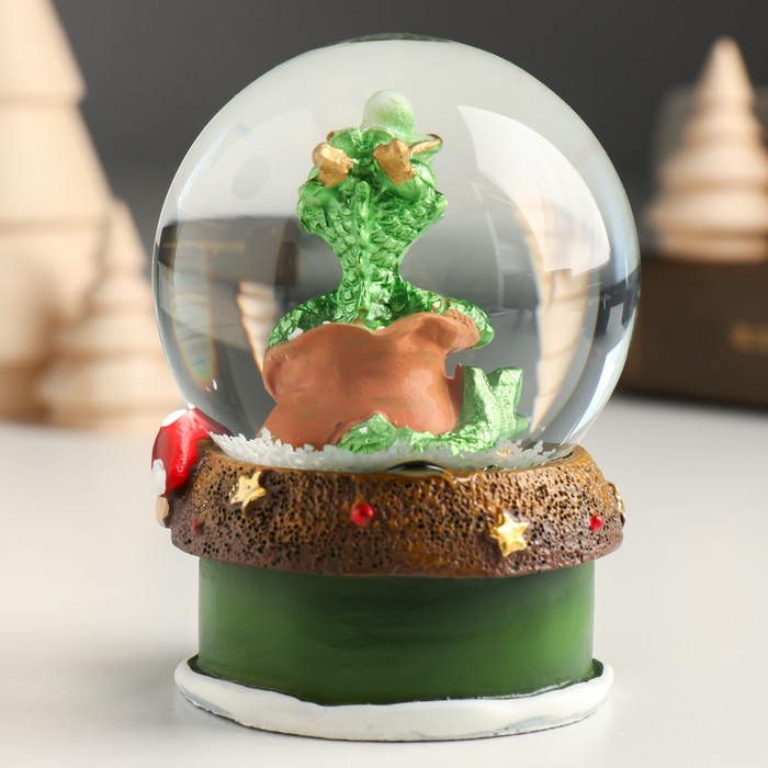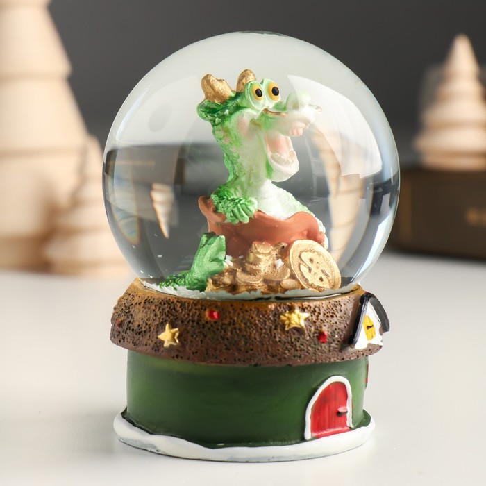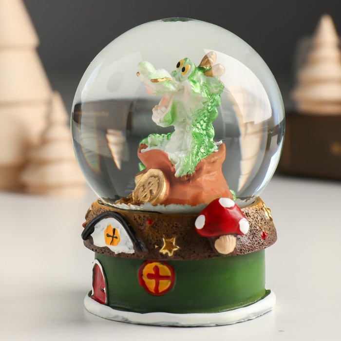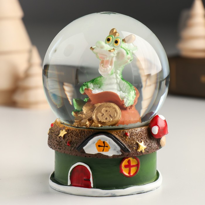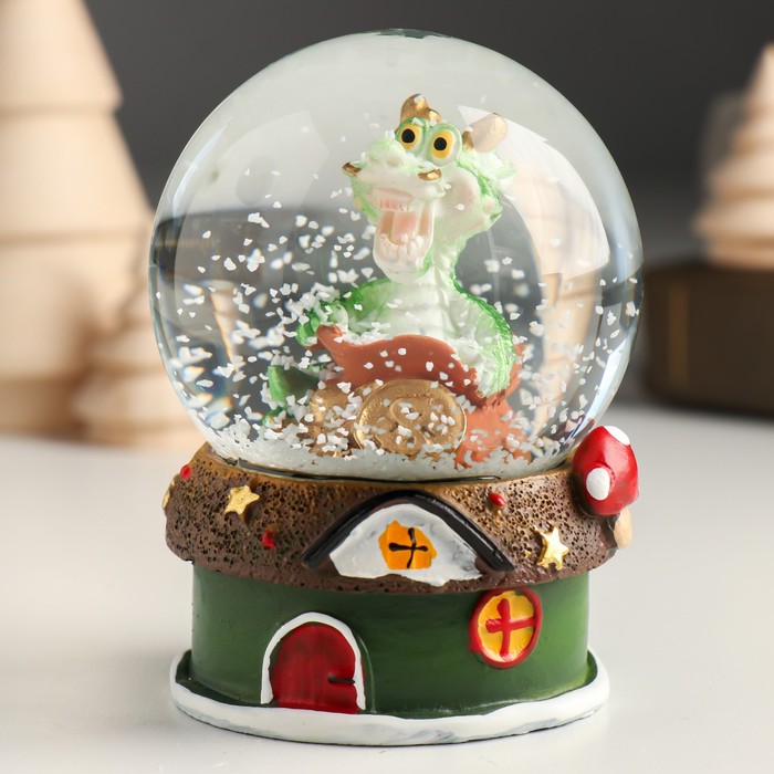Снежный шар новогодний стеклянный «Китайский зелёный дракон на домике к богатству», 6.5×6.5×8.8 см 5 фото