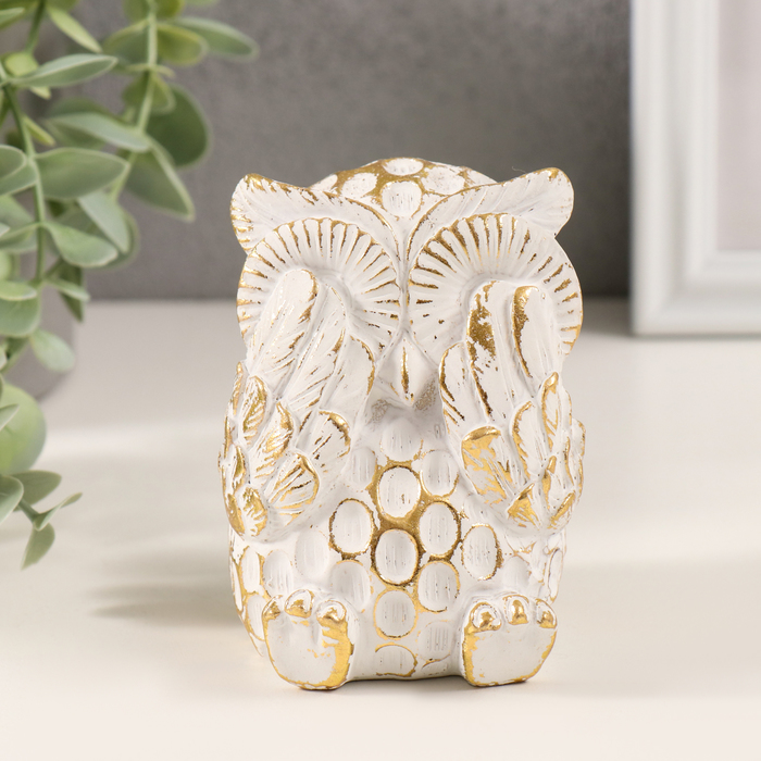Фигурка полистоун «Совёнок: игра в прятки», белый с золотой патиной, 6.5×7×9 см 4 фото