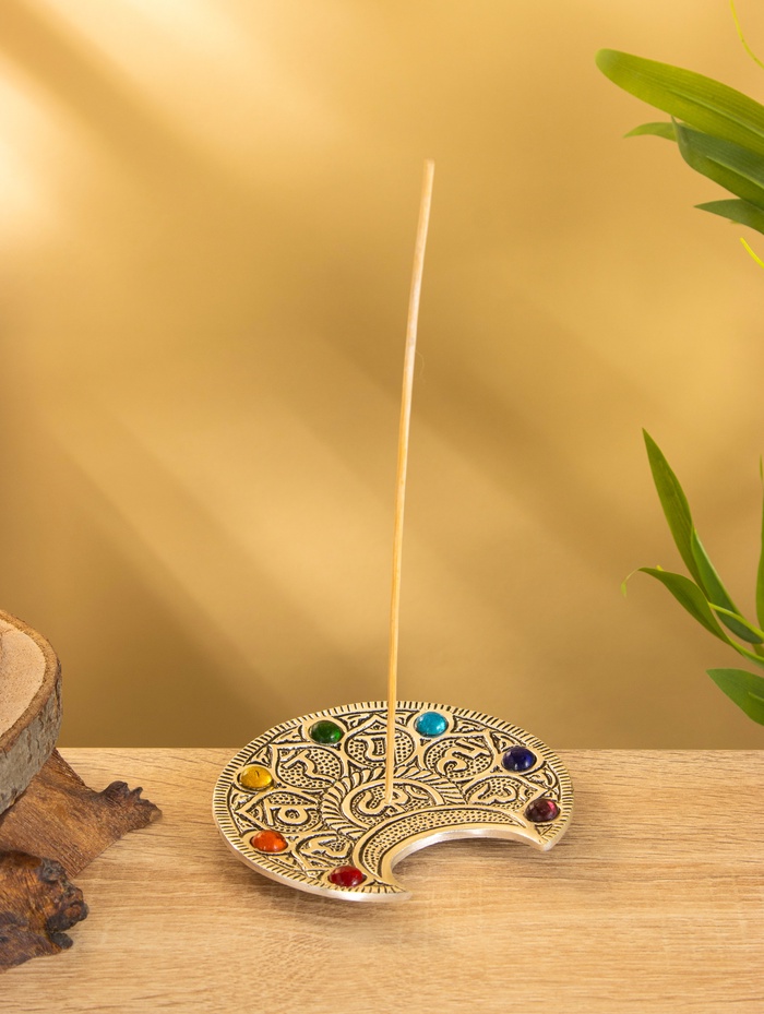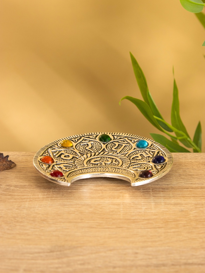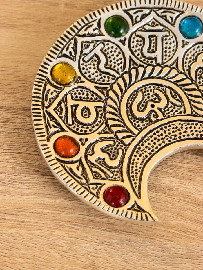 Подставка под благовония «Полумесяц с цветными кристаллами», 12×11 см, алюминий 4 фото