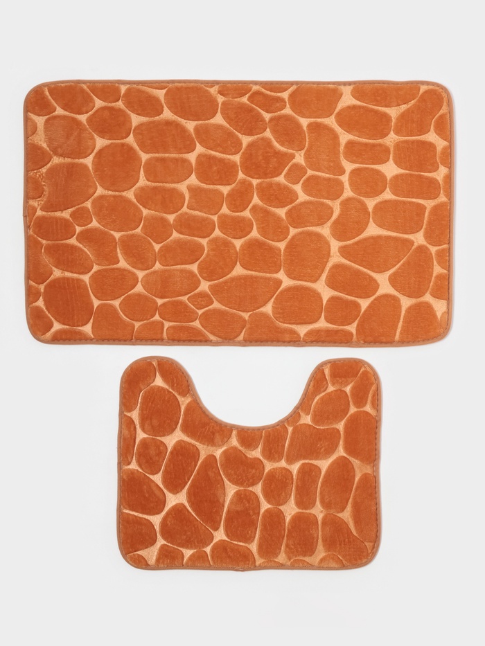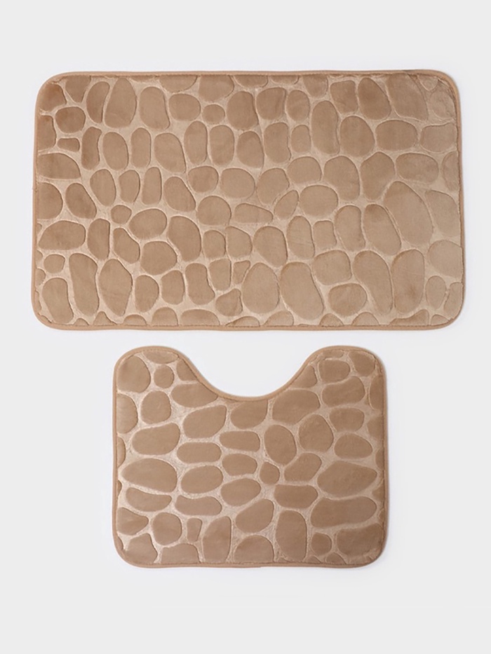 Коврики для ванной и туалета Доляна «Камни», 2 шт., 40×50, 50×80 см, бежевые 8 фото