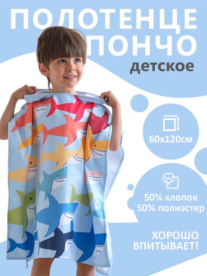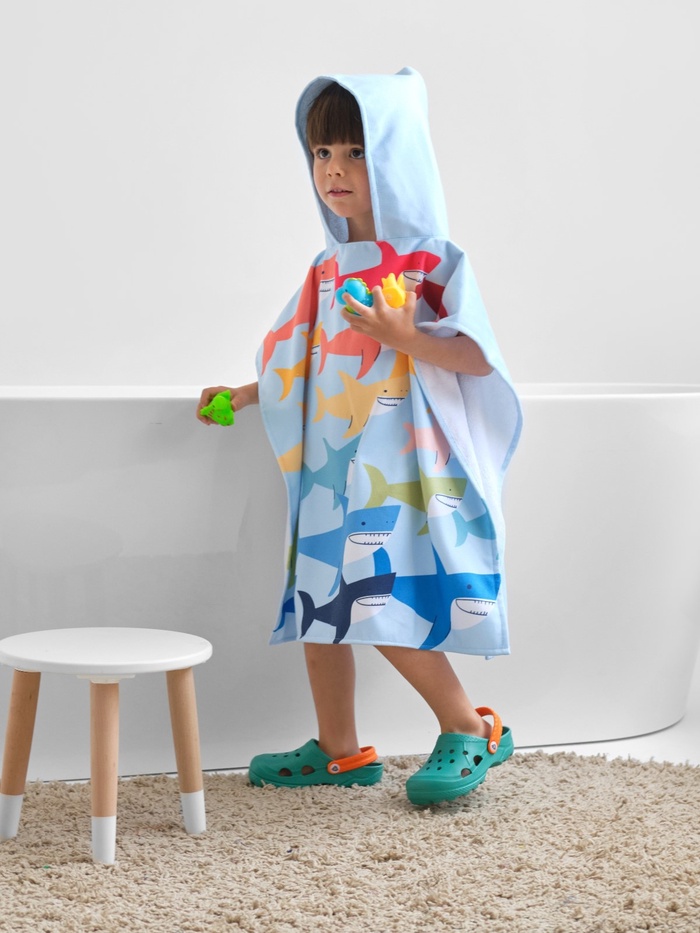 Пончо муслиновое детское LoveLife, 56×70 см, хлопок 100%, серо-голубое 9 фото