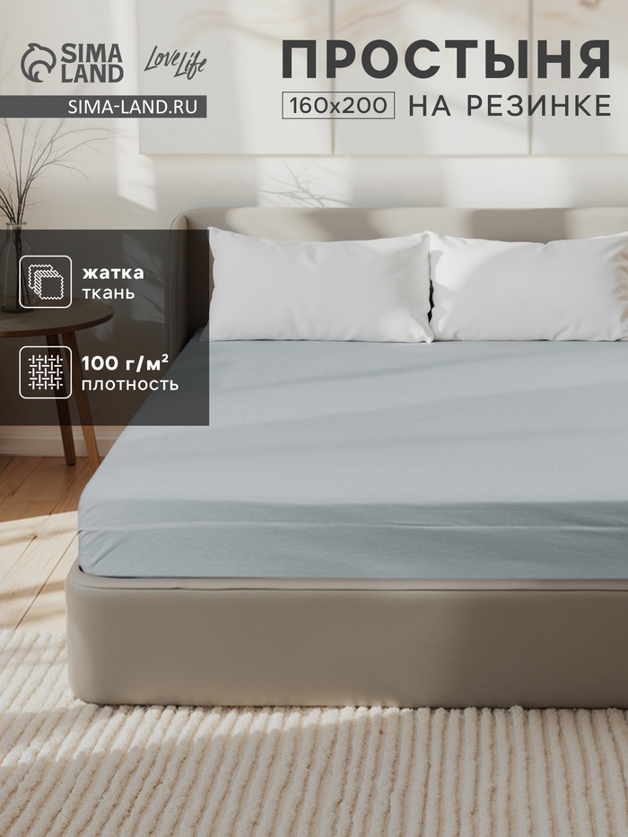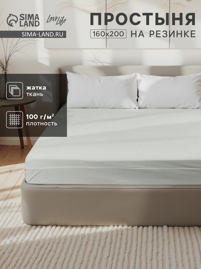 Простыня на резинке 2-спальная LoveLife, 160×200+25 см, зелёная, жатка 7 фото