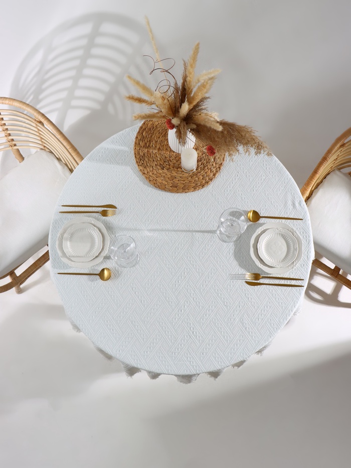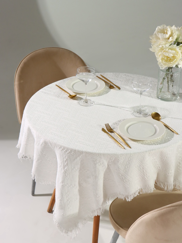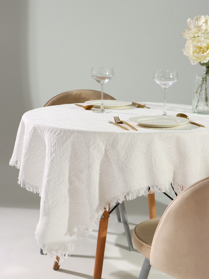 Скатерть «Этель», белая, фактурная, 130×130 см 10 фото
