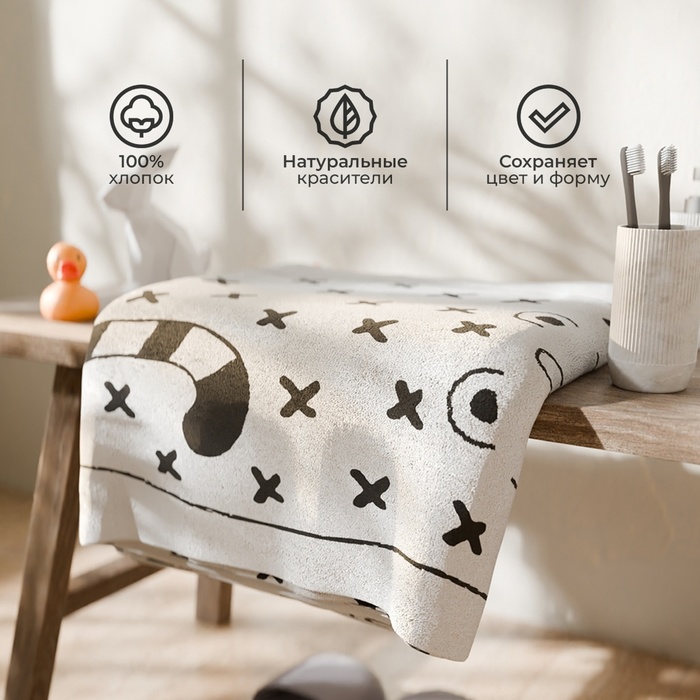 Полотенце махровое «Этель.Тигруля», 70×130 см, хлопок 100%, чёрно-белое 8 фото