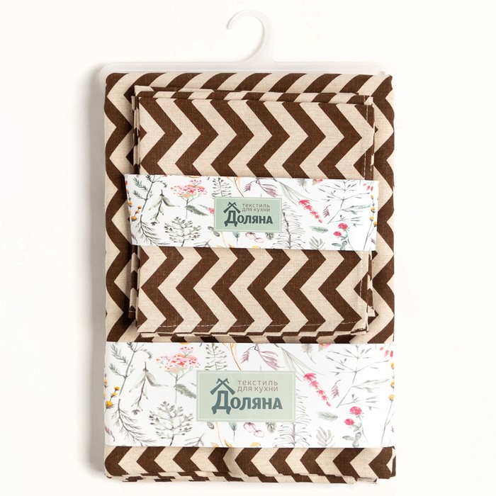 Набор кухонный «Доляна»: скатерть 145×200 см, салфетки 40×40 см-4 шт., коричневый, 100% п/э, рогожка 200 г/м² 10 фото