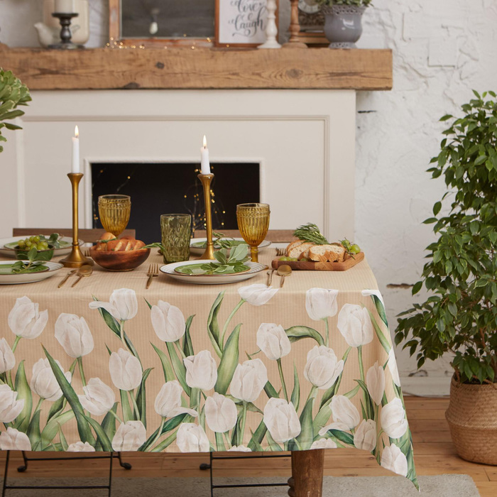 Скатерть «Этель. Белые тюльпаны», 149×110 см, 100% хлопок, саржа 190 г/м² 7 фото