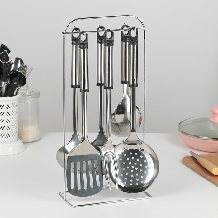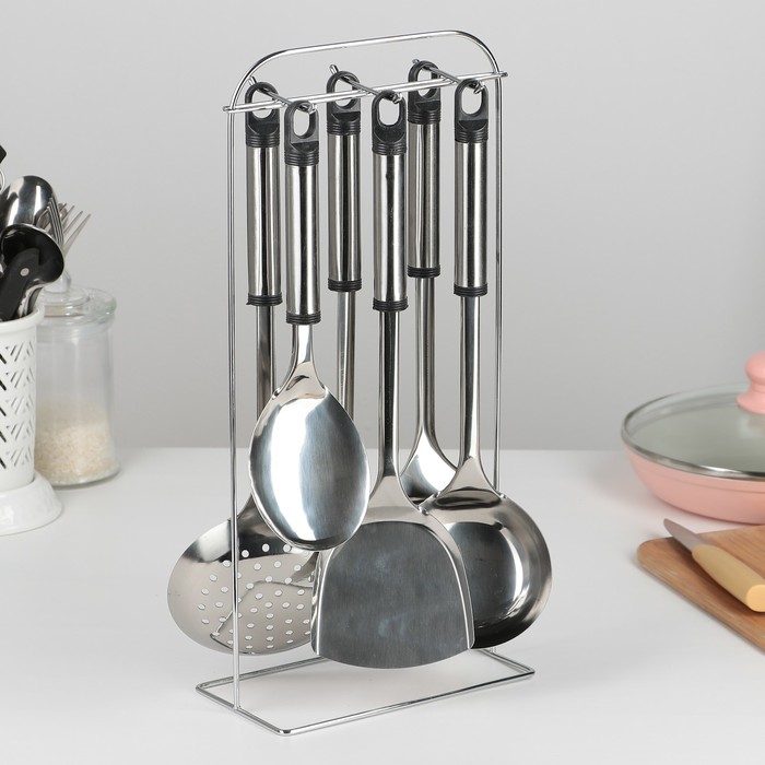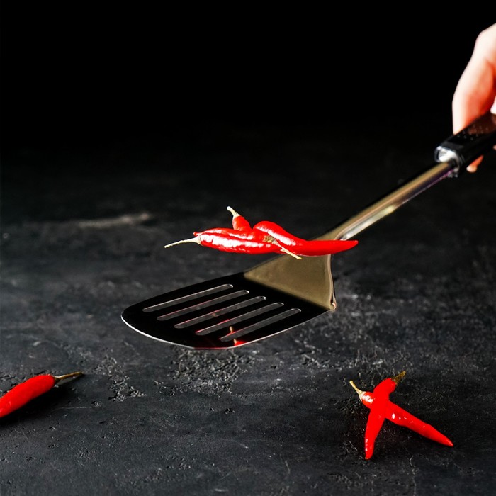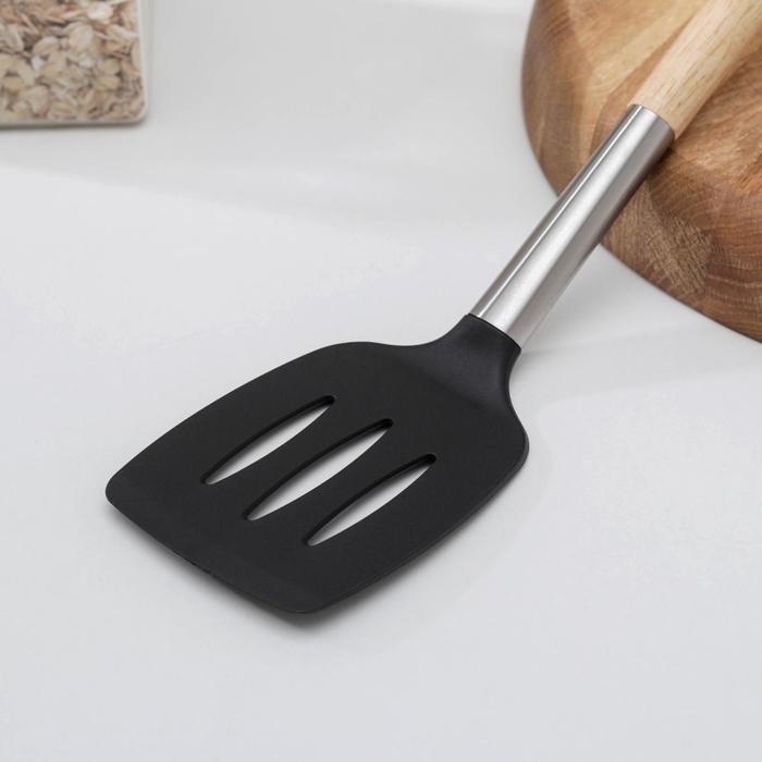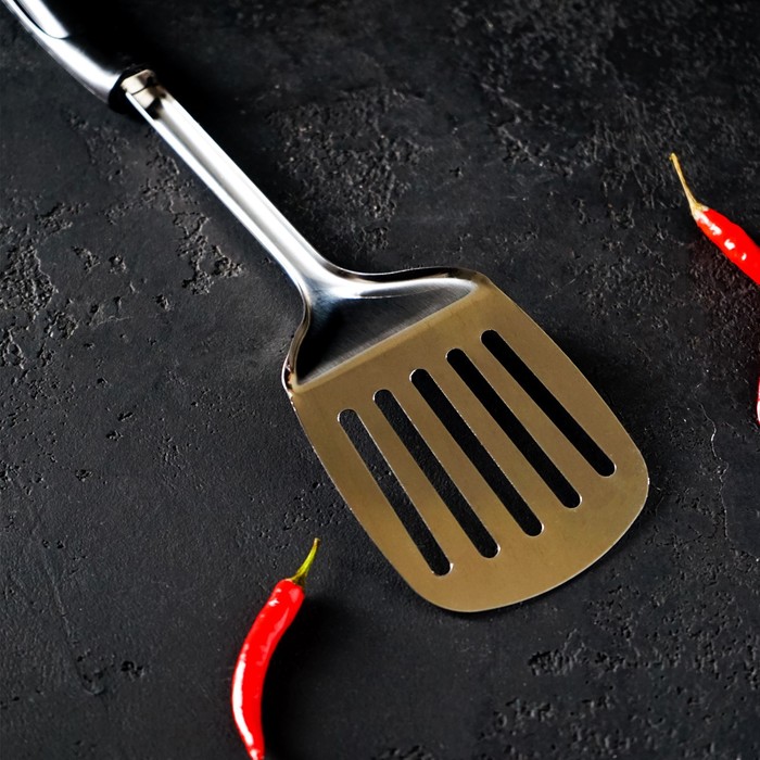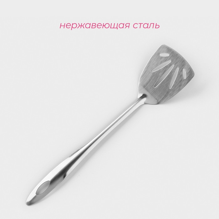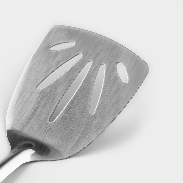 Лопатка из нержавеющей стали Доляна «Хозяюшка», с отверстиями, длина 28 см, цвет серебряный 5 фото