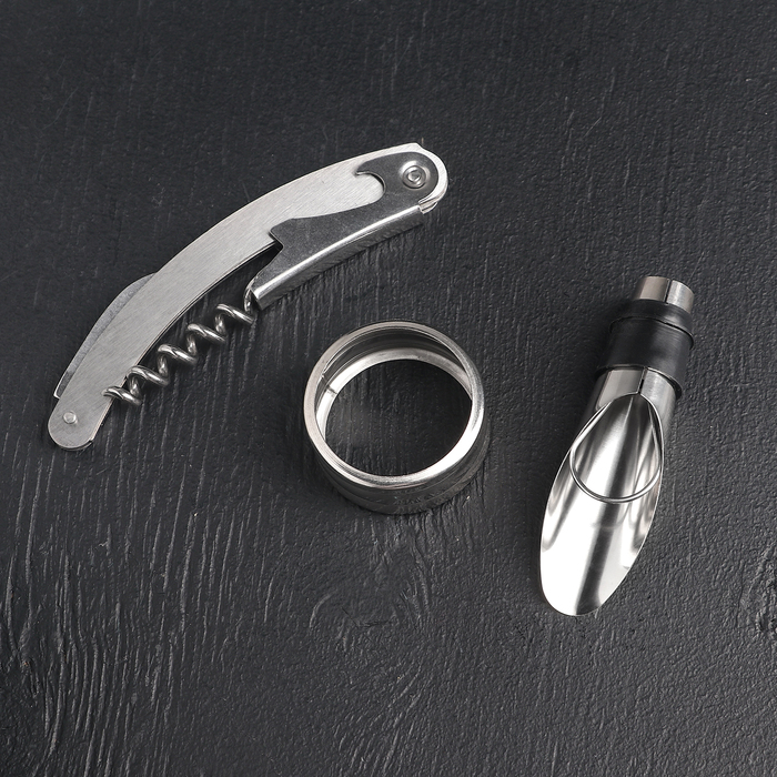 Набор для вина Доляна, 6 предметов: кейс для бутылки, каплеуловитель, штопор, пробка, кольцо, нож для фольги 7 фото