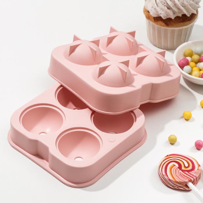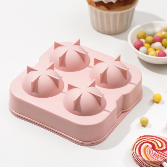 Форма для льда Доляна, пластик, 12×5 см, 4 ячейки, розовая 3 фото