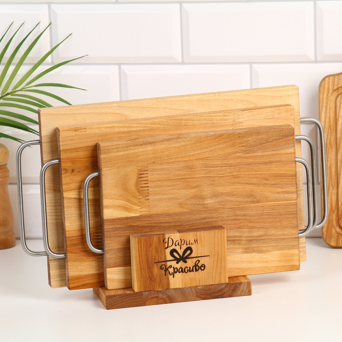 Набор разделочных досок с держателем «Хохлома», 3 шт., 48×33×1 см, дерево 10 фото