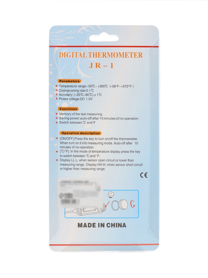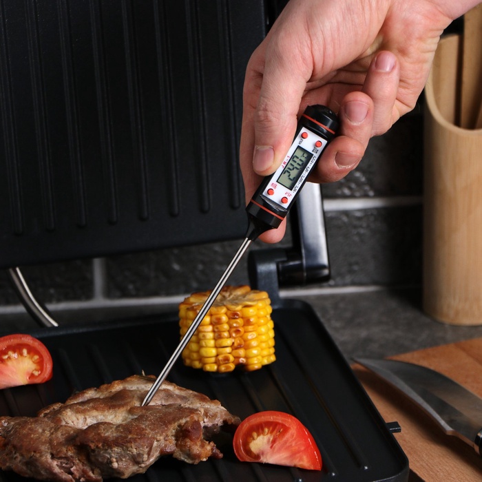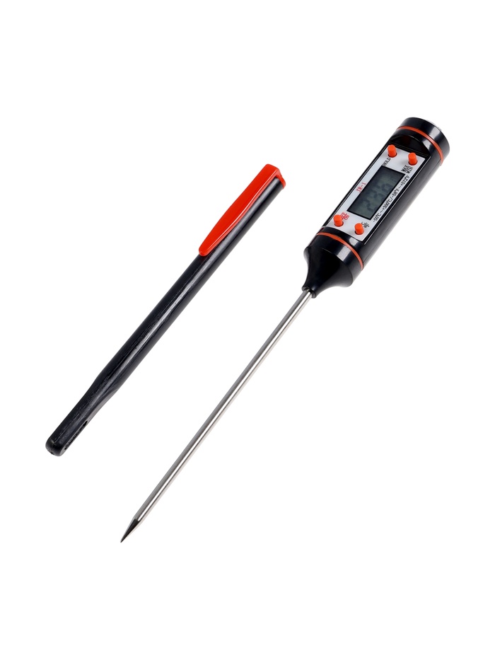 Термометр (термощуп) кухонный JR-1, электронный, на батарейках, с чехлом, чёрный 10 фото