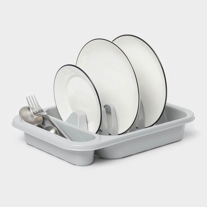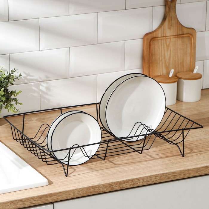 Сушилка для тарелок с поддоном Доляна, на 12 предметов, чёрная 6 фото