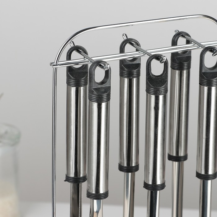 Полка для кухни Доляна, с держателем для полотенец, 6 крючков, чёрная 6 фото