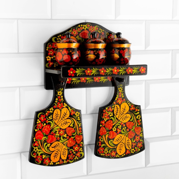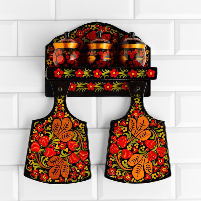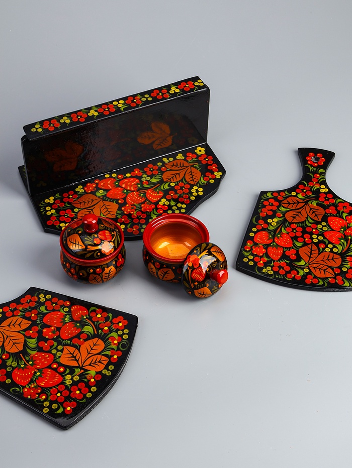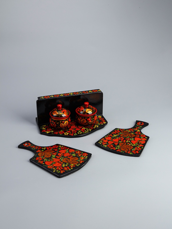 УЦЕНКА Набор «Земляничка», 6 предметов: 2 доски, 3 банки, подставка, хохлома 4 фото