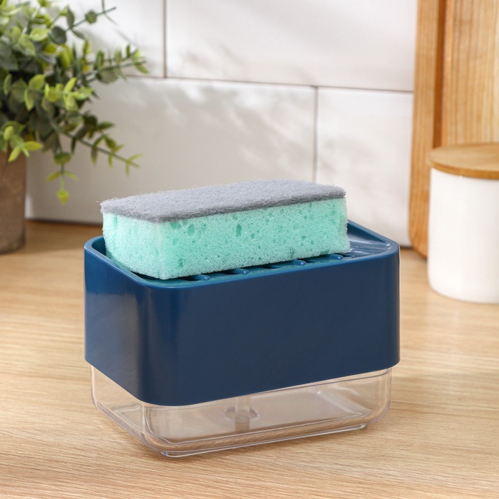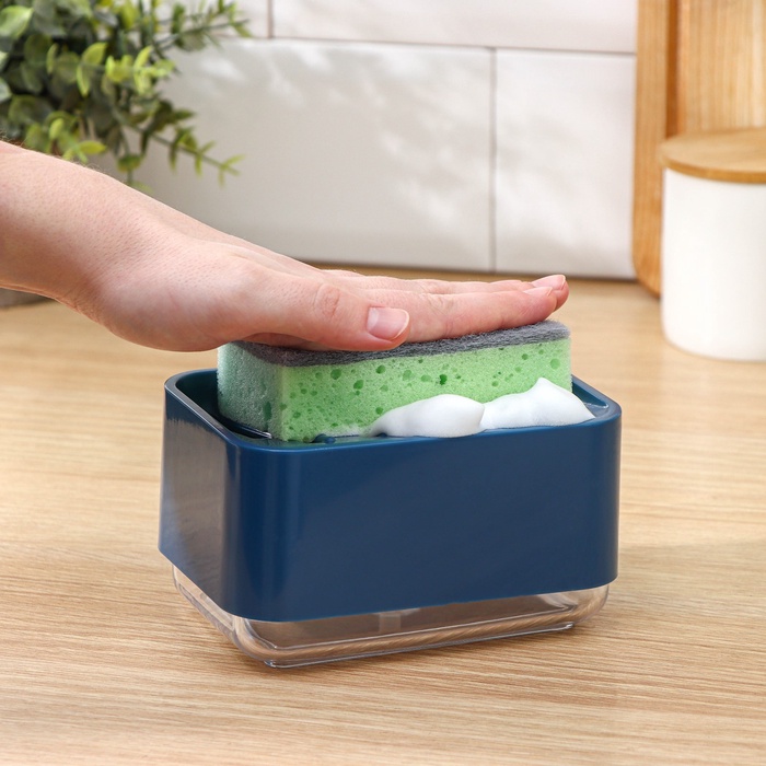 УЦЕНКА Дозатор для моющего средства с подставкой для губки, губка в комплекте, синий 4 фото
