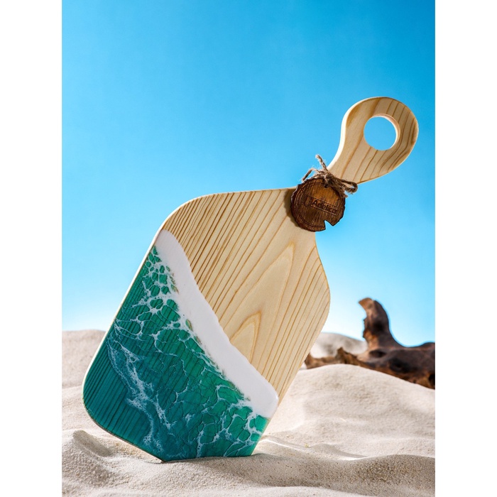 УЦЕНКА Доска разделочная авторская, с эпоксидной пищевой смолой,17×38×2.5 см, цельный кедр, рис. МИКС 7 9 фото