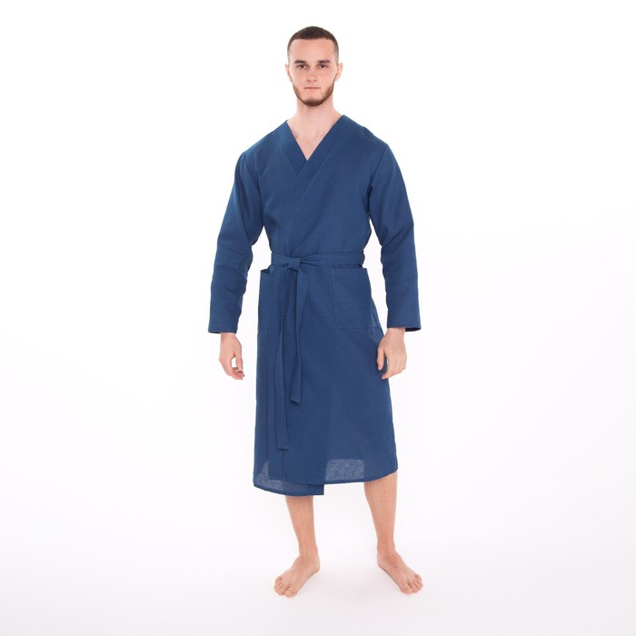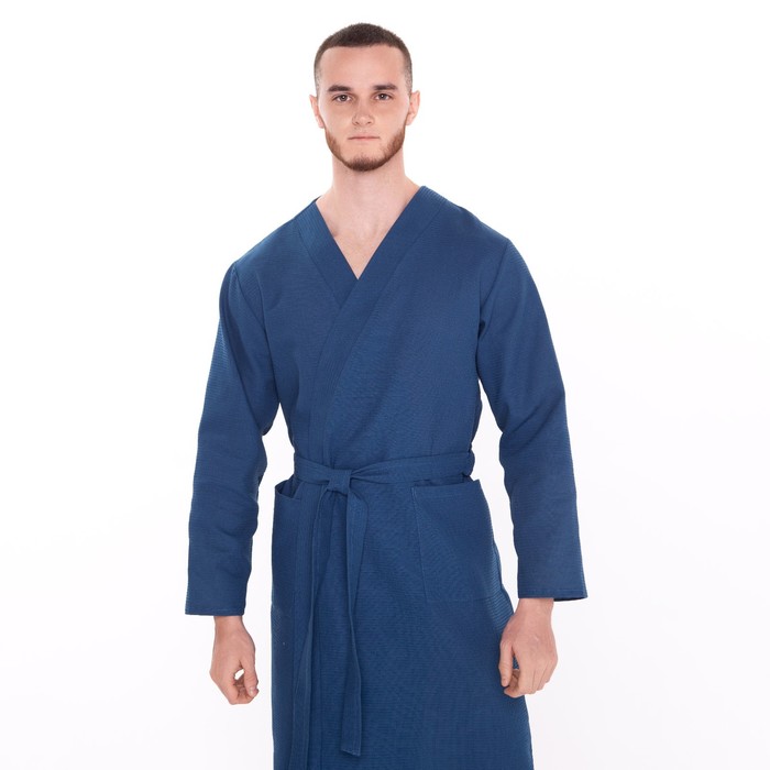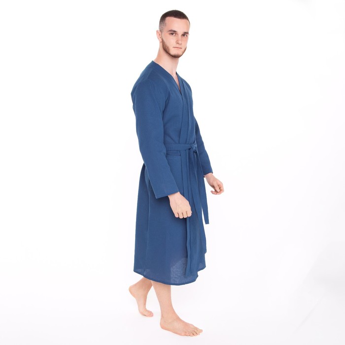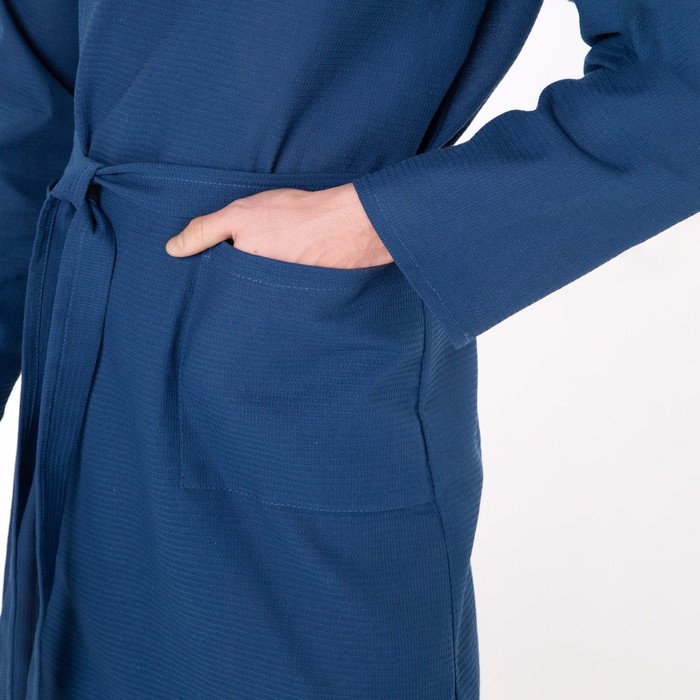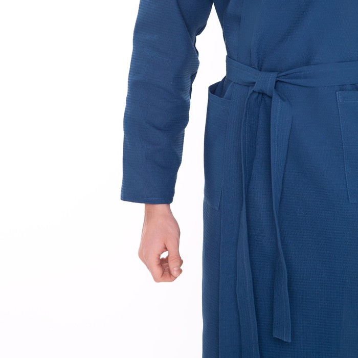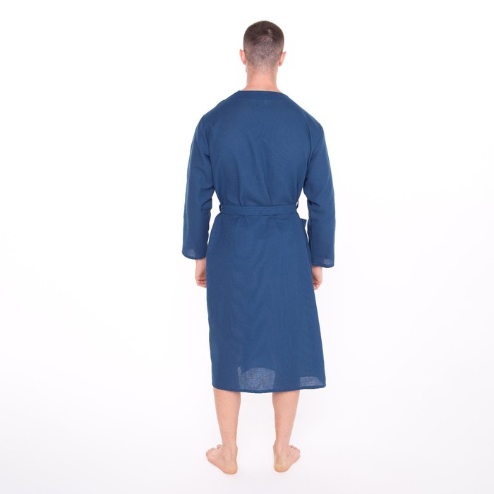 Халат вафельный запашной мужской, размер 52, хлопок 100%, синий 6 фото