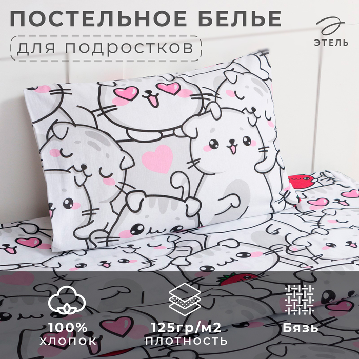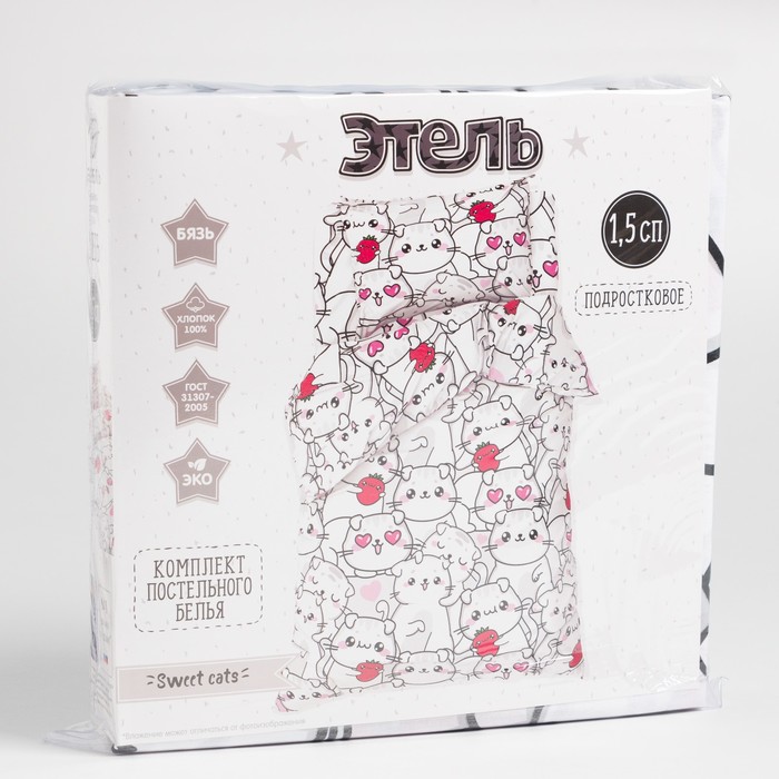 Постельное бельё 1.5-спальное «Этель» Sweet cats, бязь 8 фото