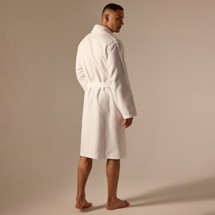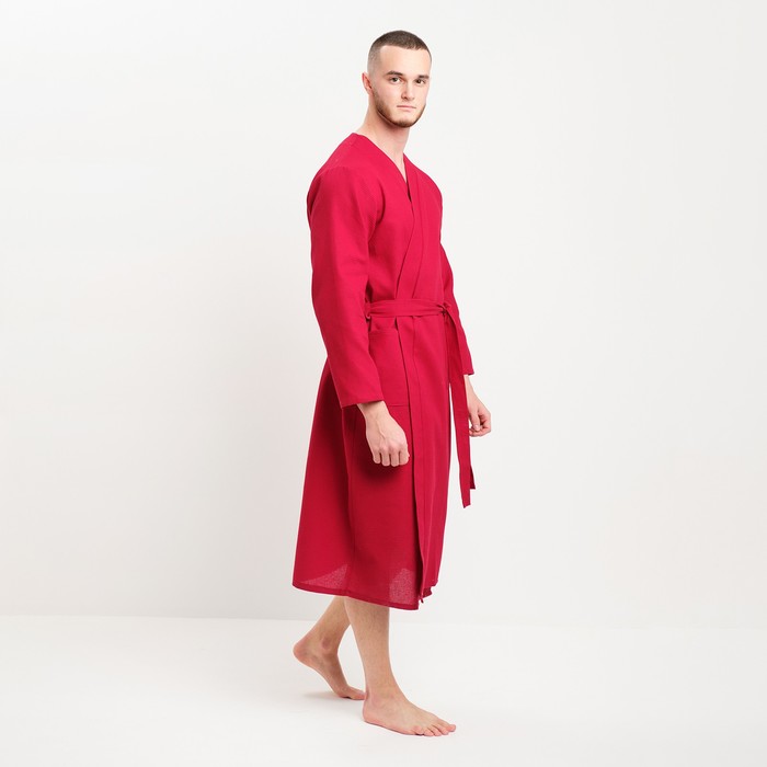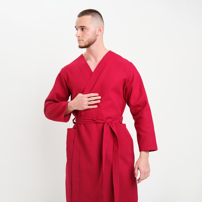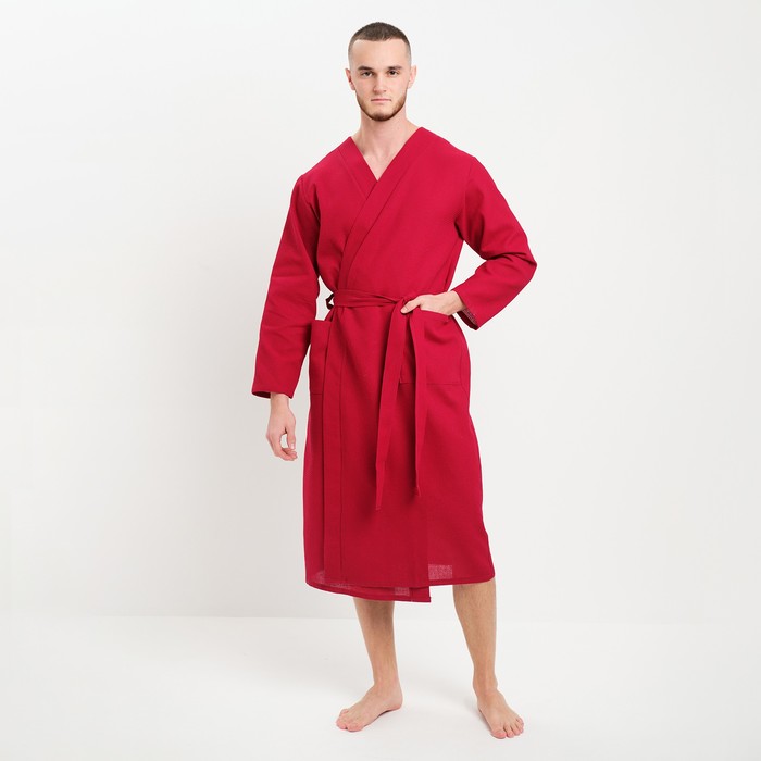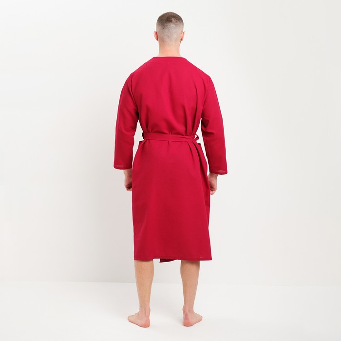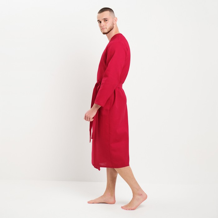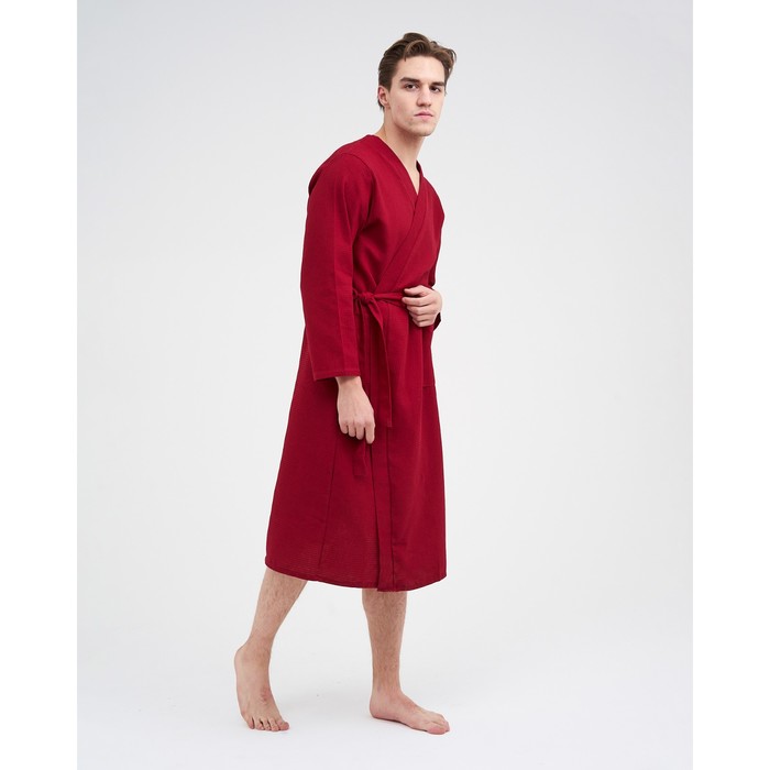 Халат мужской вафельный запашной, вишня, размер 54, 160 г/м² 7 фото