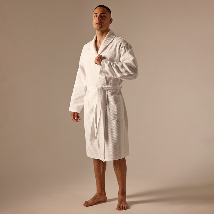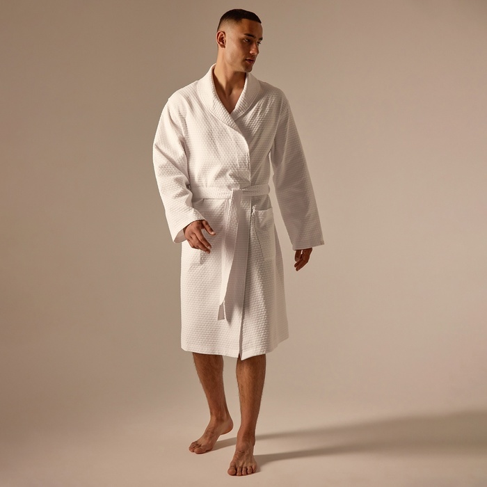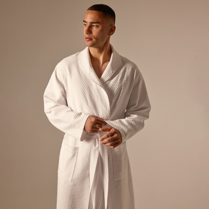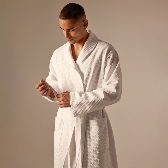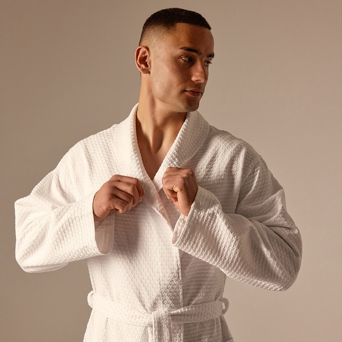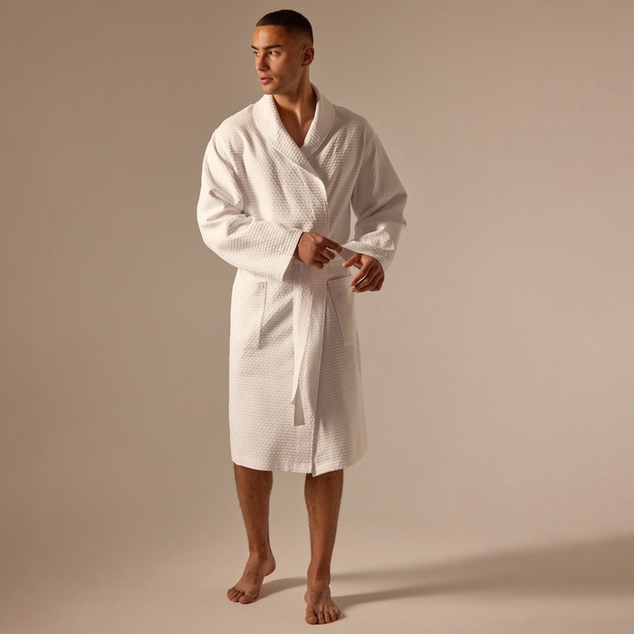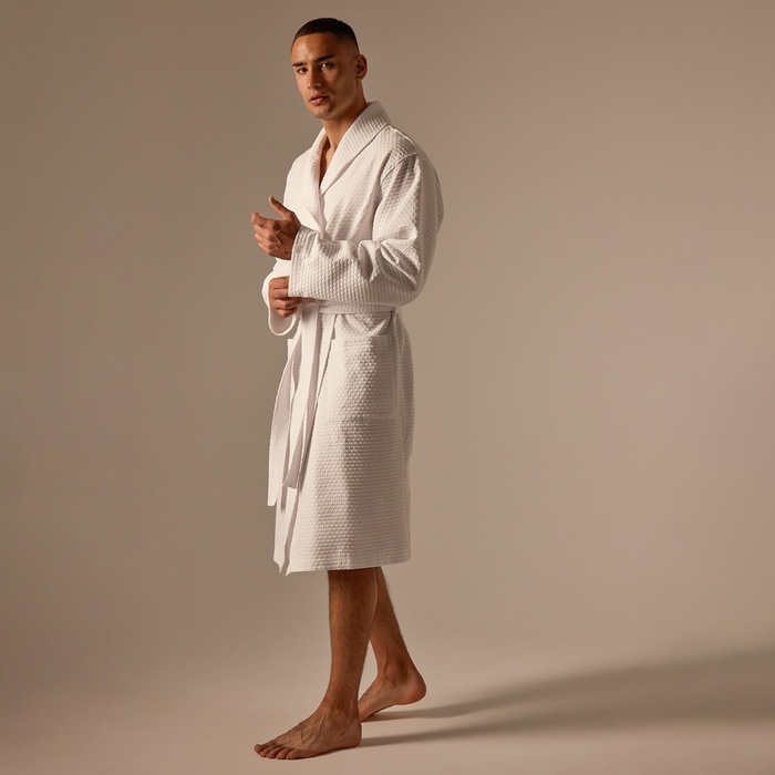 Халат мужской вафельный запашной, вишня, размер 54, 160 г/м² 7 фото