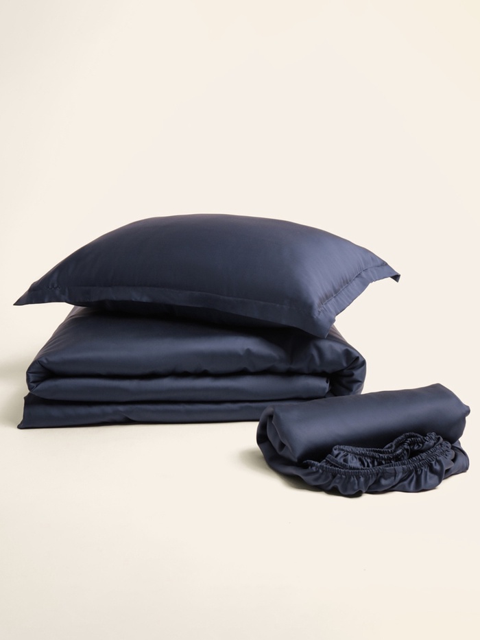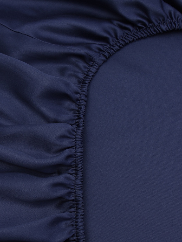 Простыня на резинке 1.5-спальная SL Home Tencel, 140×200+30 см, синяя, тенсель 10 фото