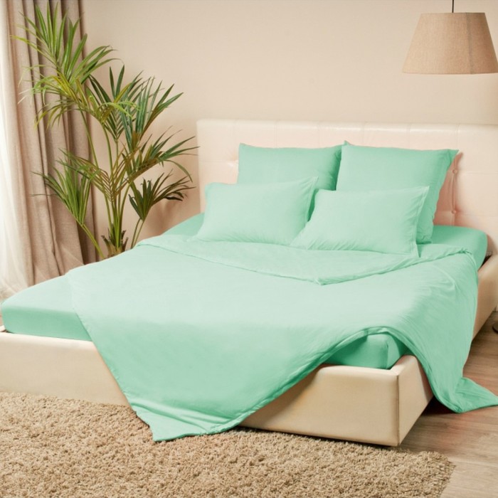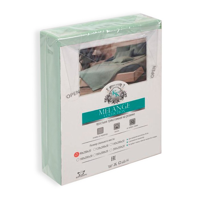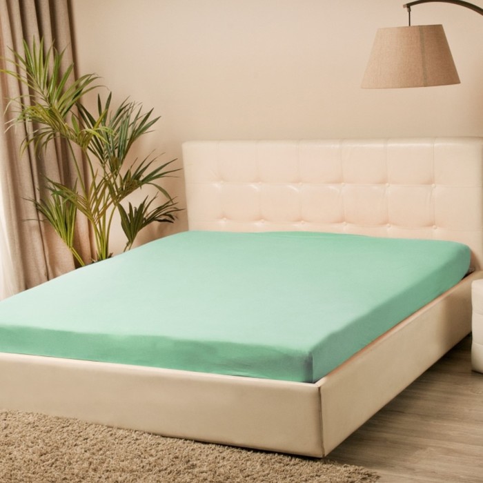 Простыня на резинке 2-спальная KUPU-KUPU, 160×200+20 см, ментол, трикотаж 5 фото