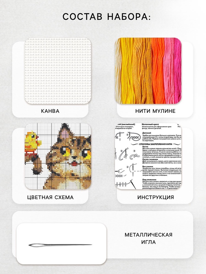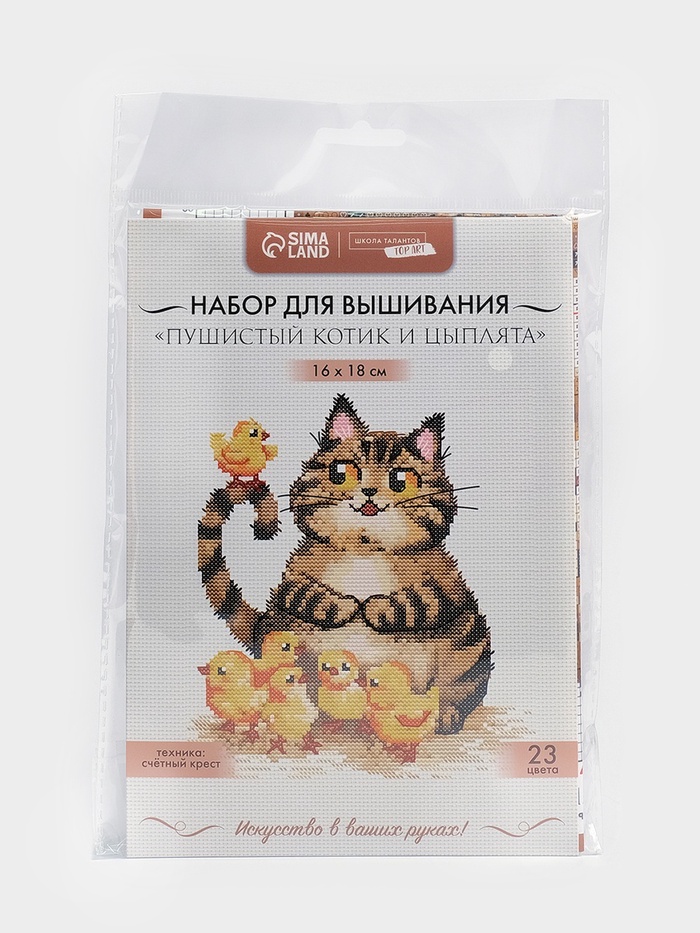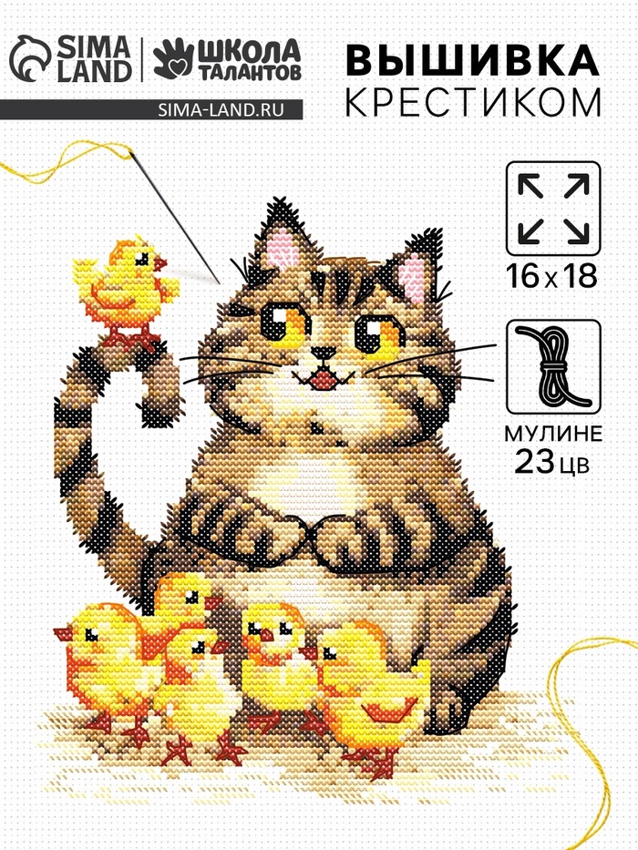 Вышивка крестиком «Пушистый котик и цыплята», набор для творчества, 16×18 см 9 фото
