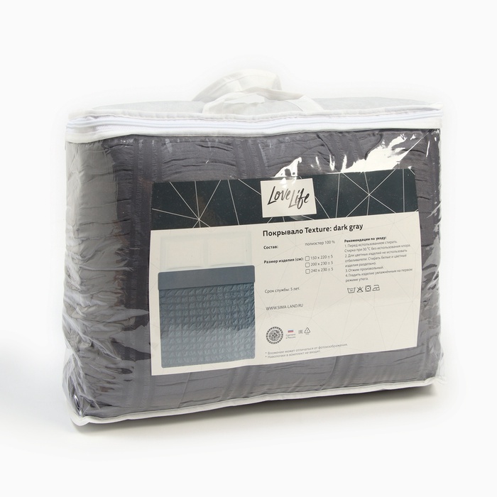 Покрывало 1.5-спальное LoveLife Texture: dark gray, 150×220±5 см, микрофайбер 4 фото