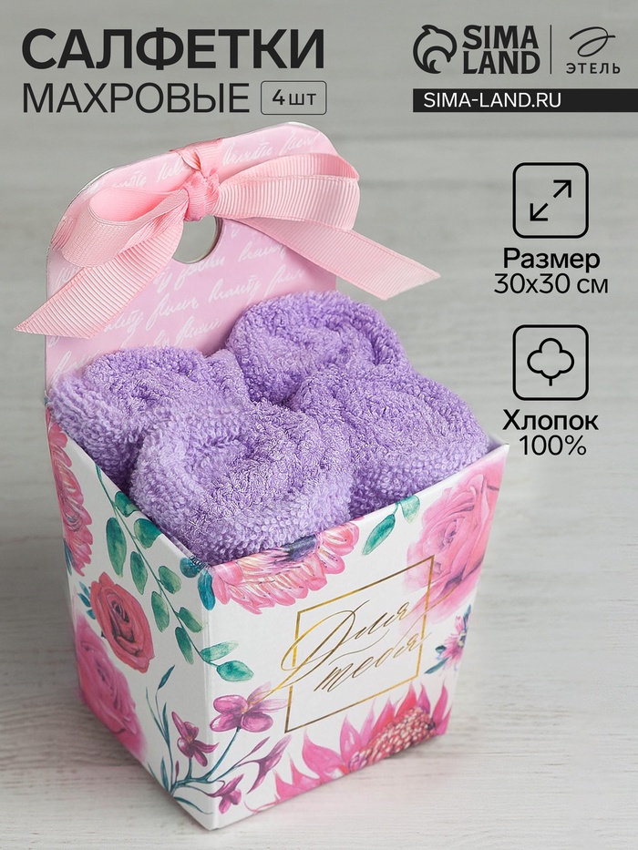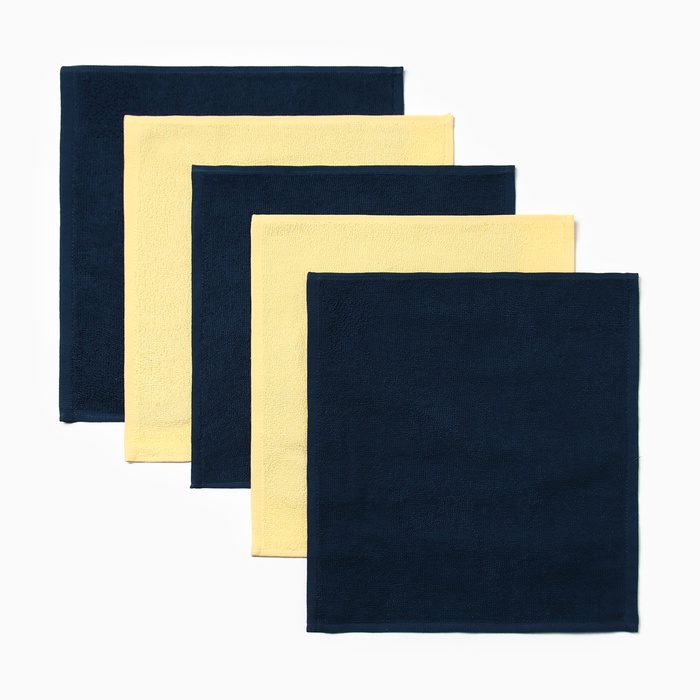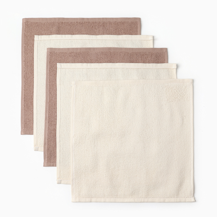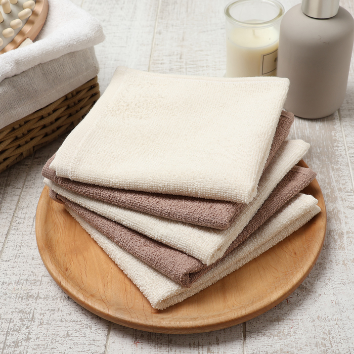 Салфетки махровые «Этель. Голубые цветы», 5 шт., 30×30 см, хлопок 100%, бежевые/коричневые 7 фото