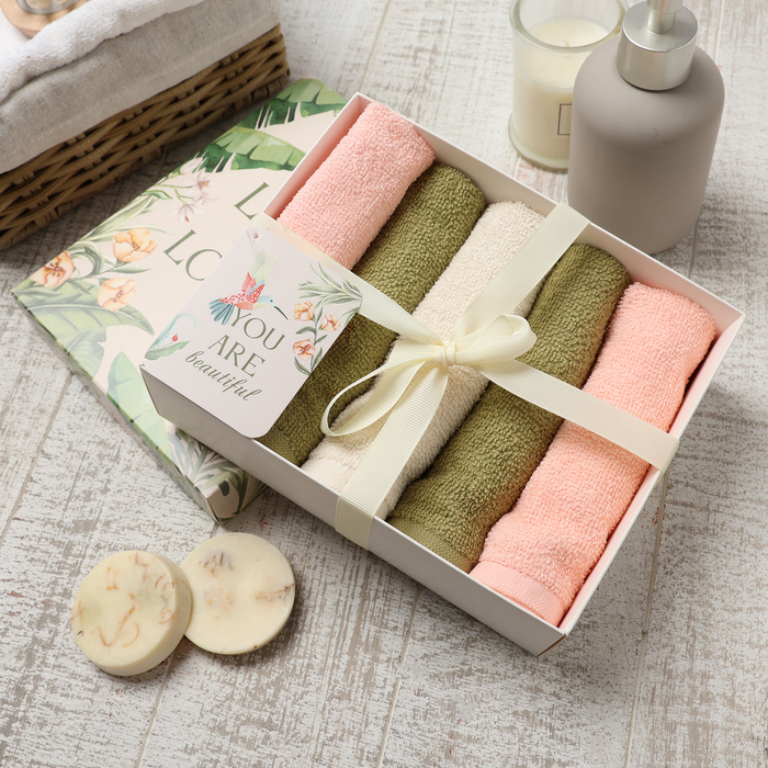 Салфетки махровые «Этель» Botanic, 5 шт., 30×30 см, хлопок 100%, зелёные/розовые 7 фото