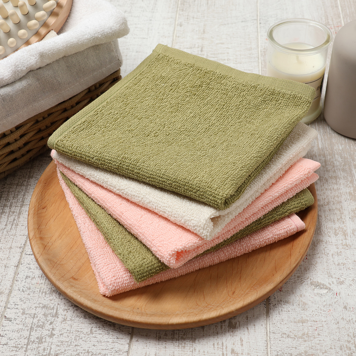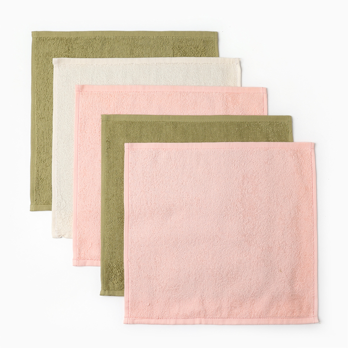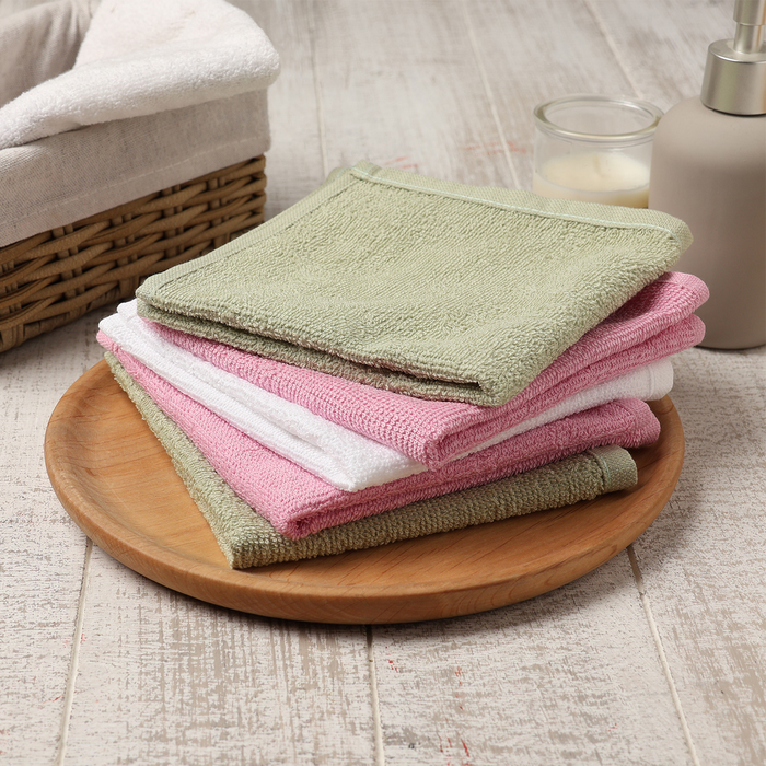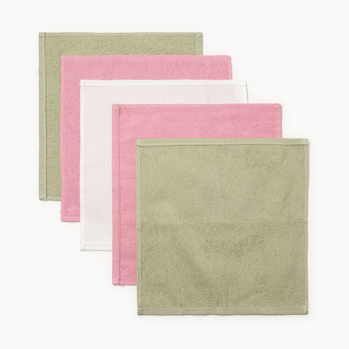 Салфетки махровые «Этель. Цветы», 5 шт., 30×30 см, хлопок 100%, зелёные/розовые 7 фото