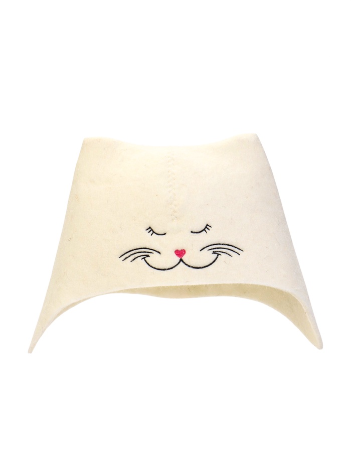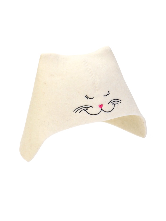 Шапка для бани и сауны, «Кошечка», полиэфир 70%, шерсть 30%, белая 6 фото