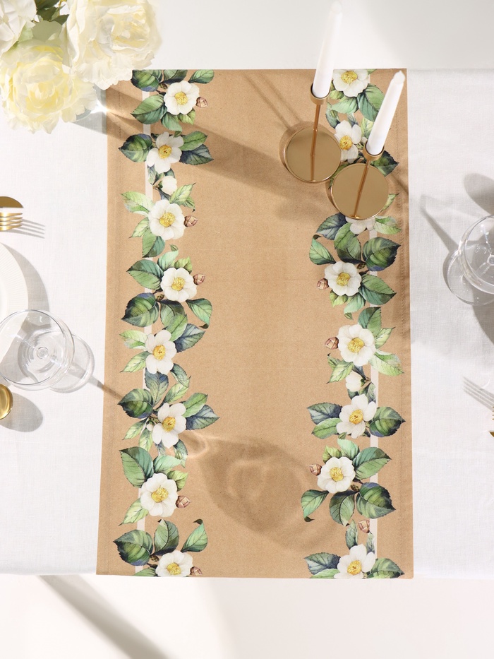 Дорожка на стол Этель Camellia 40×146 см, 100% хлопок, саржа 190 г/м², бежевая 10 фото