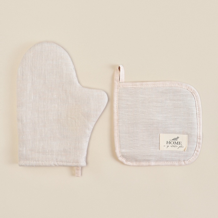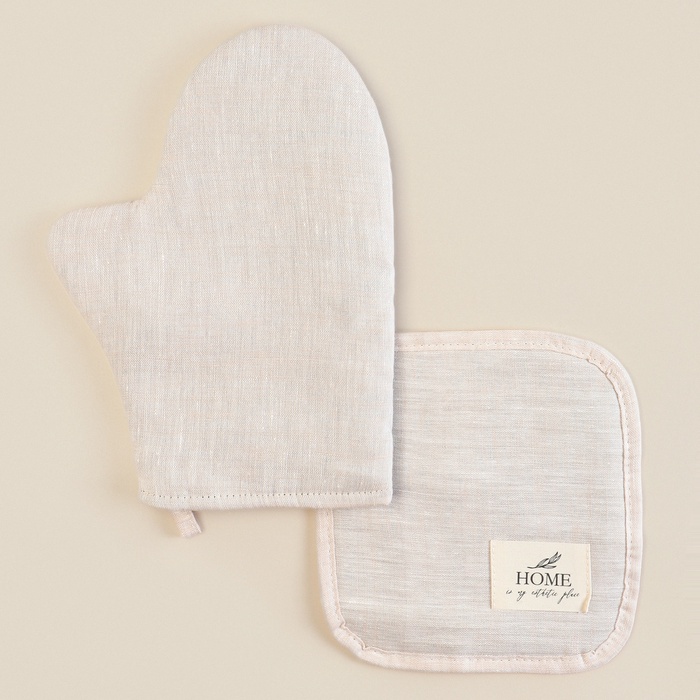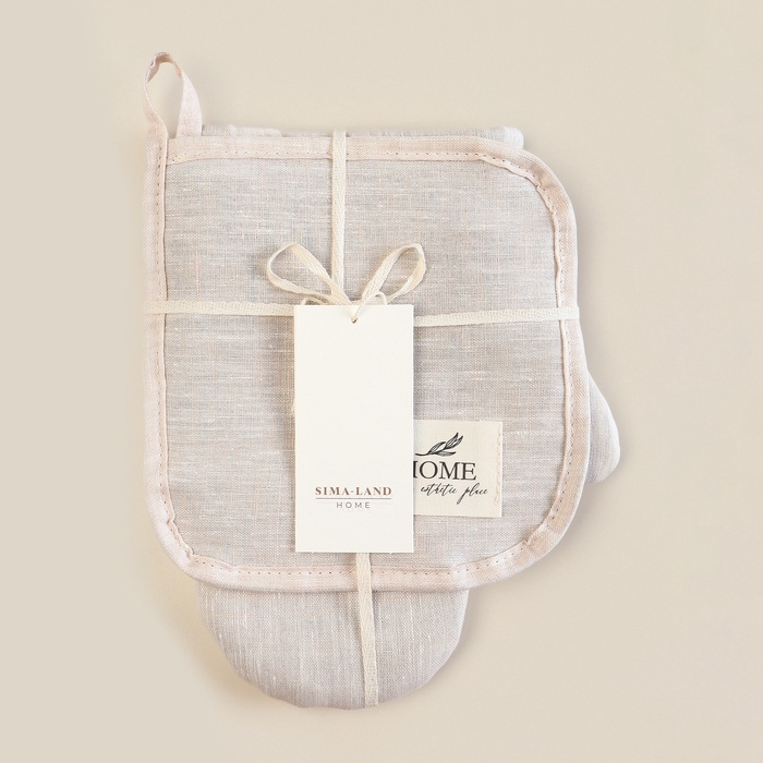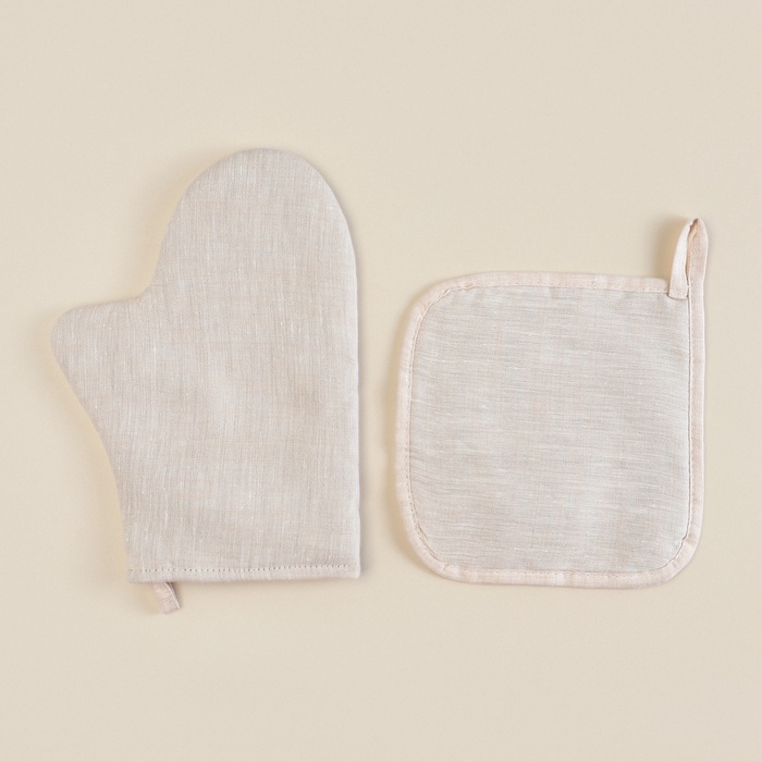 Набор кухонный SL HOME Gloomy: варежка 20×28 см, прихватка 19×19 см, лён 100%,180 г/м² 7 фото