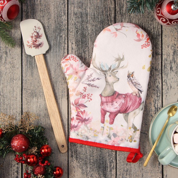 Набор новогодний подарочный «Доляна. Олень»: варежка-прихватка, лопатка силикон 8 фото