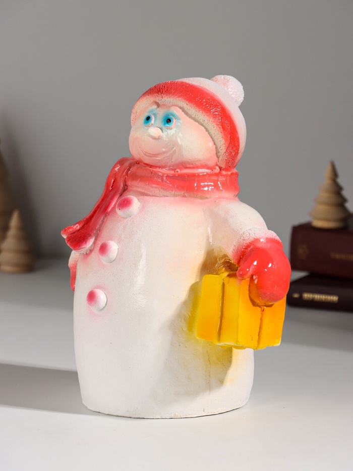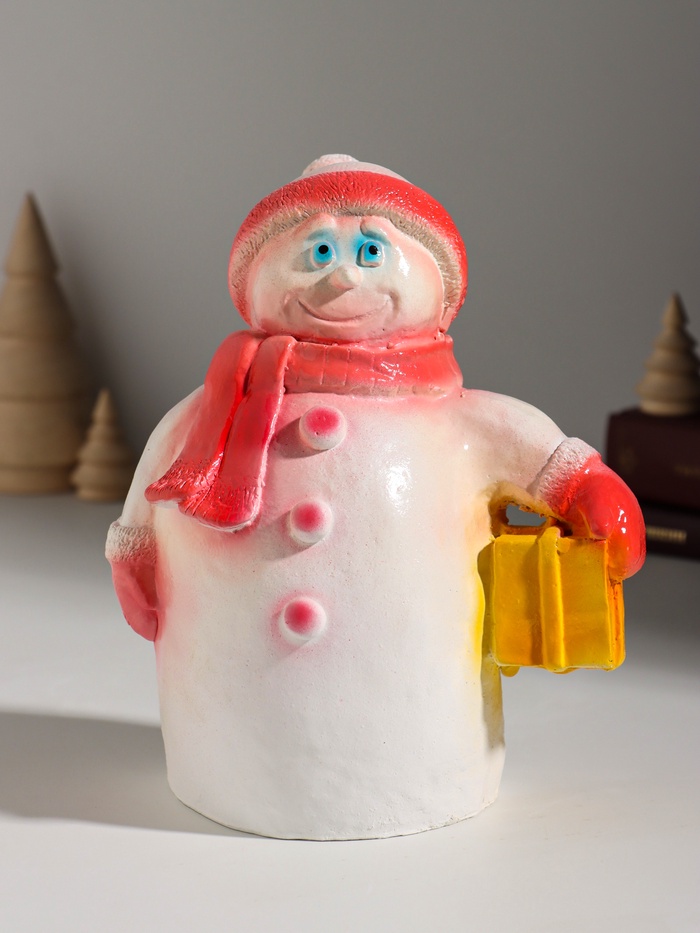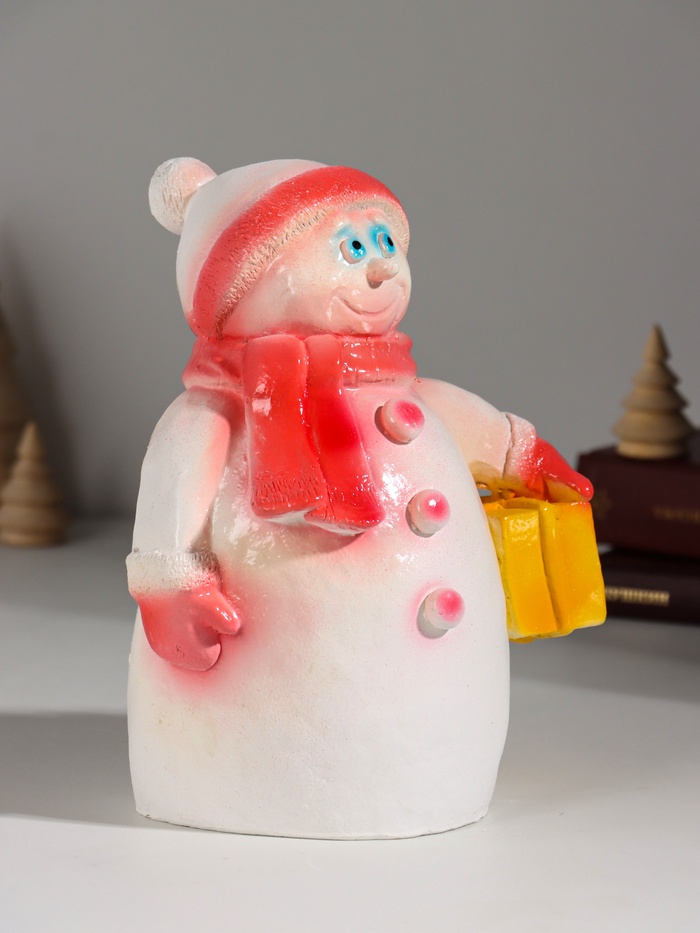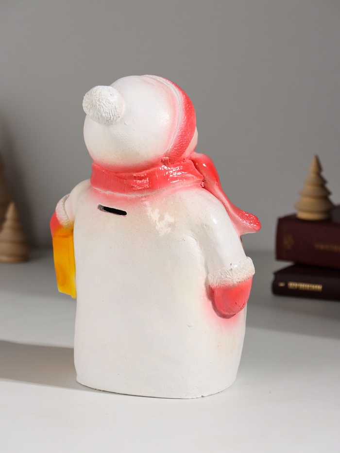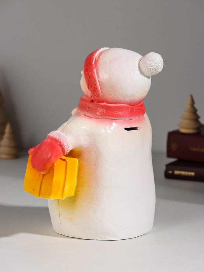 Копилка для денег «Снеговик новогодний с подарком», гипс, 19 см, красный 6 фото