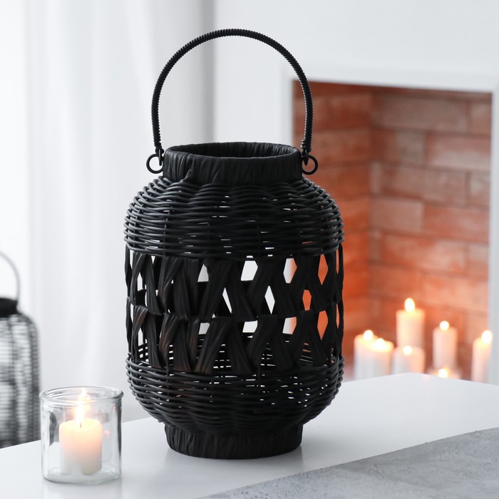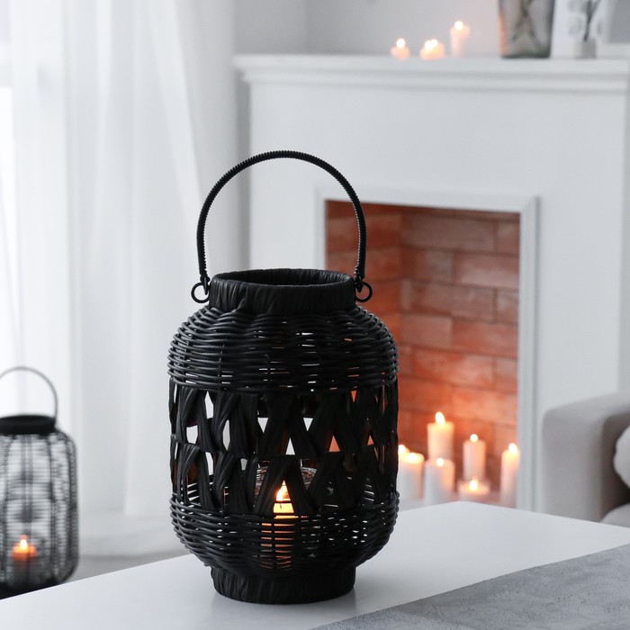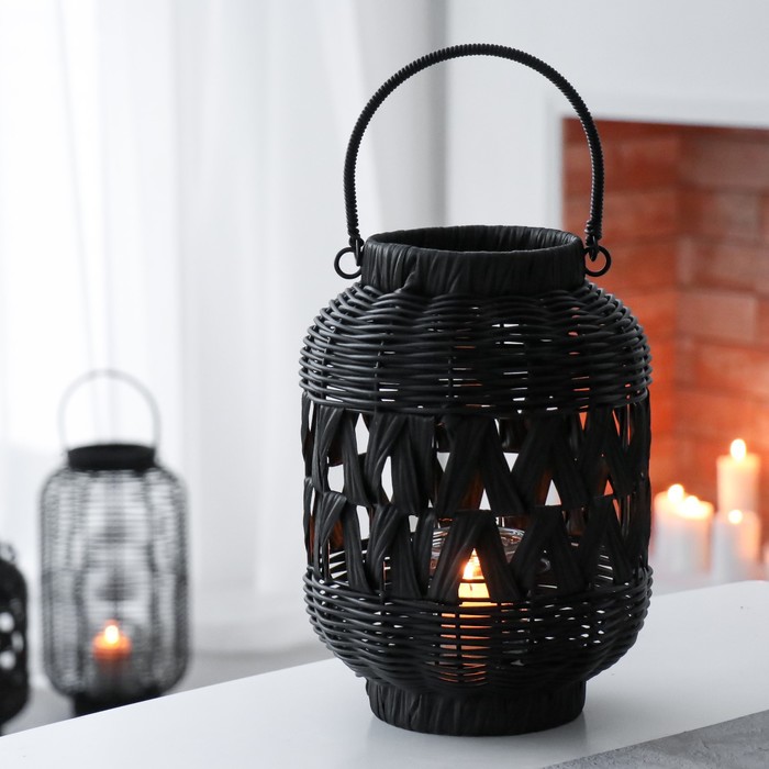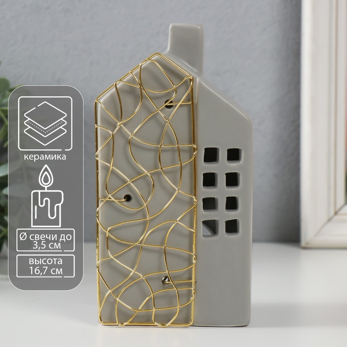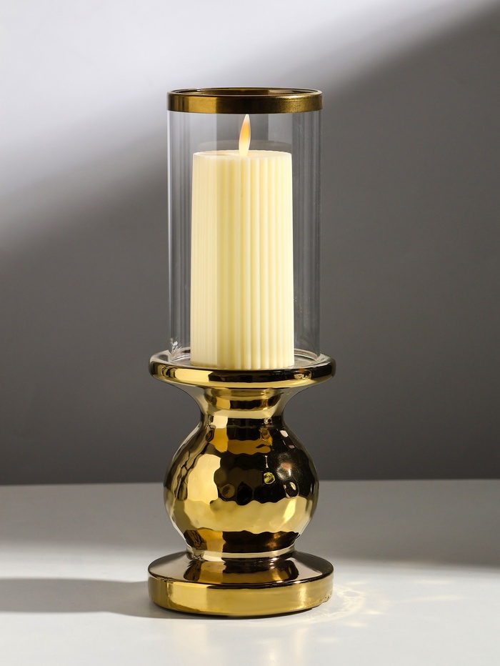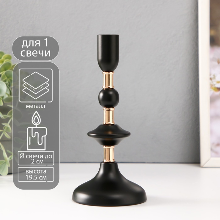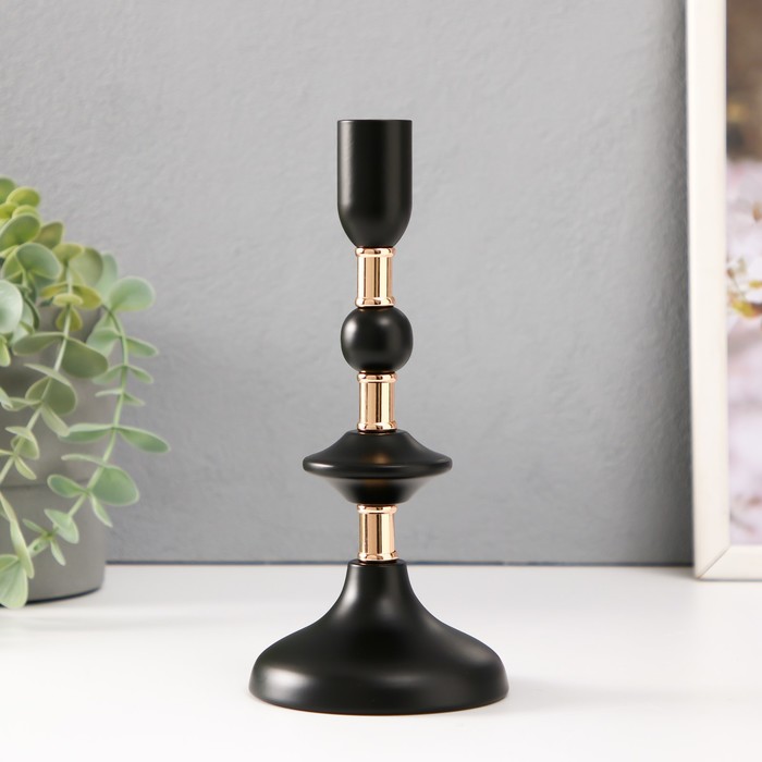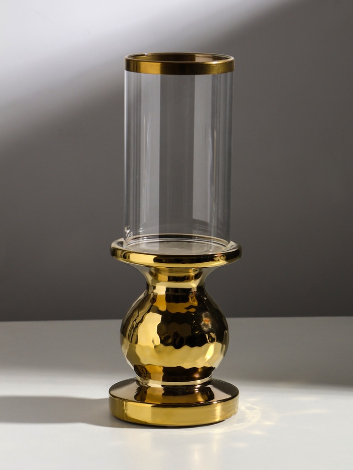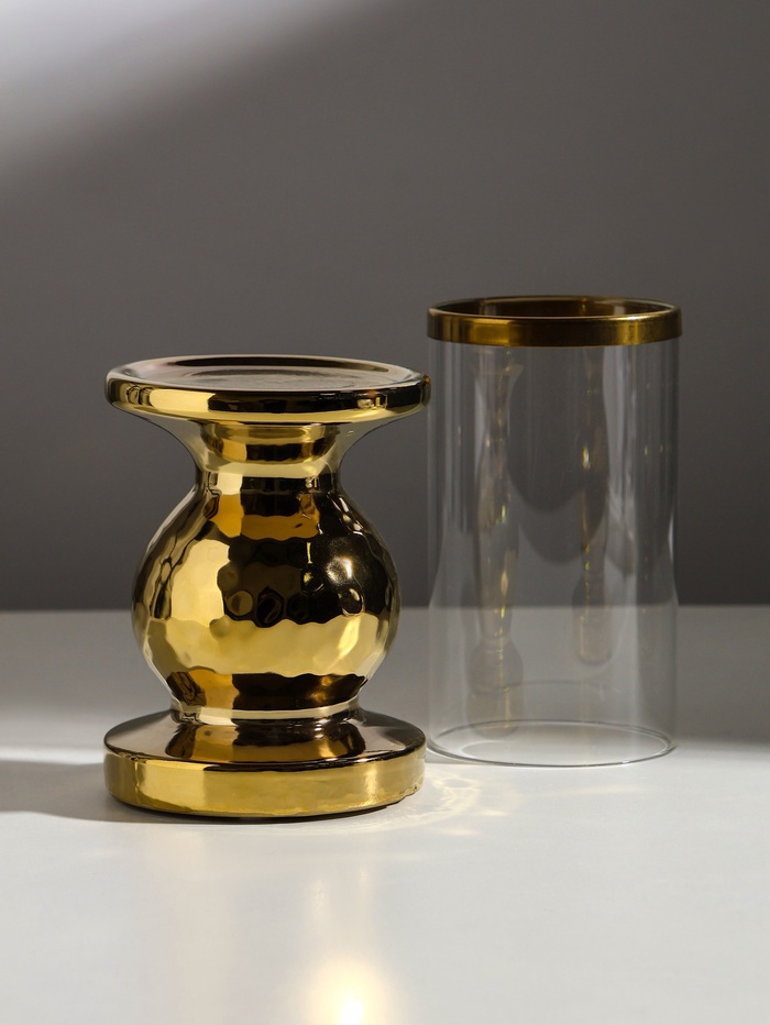 Подсвечник на 1 свечу «Нуар», керамика, стекло, d=8 см, золото, 10×10×27 см 4 фото