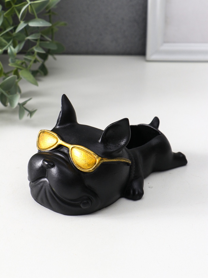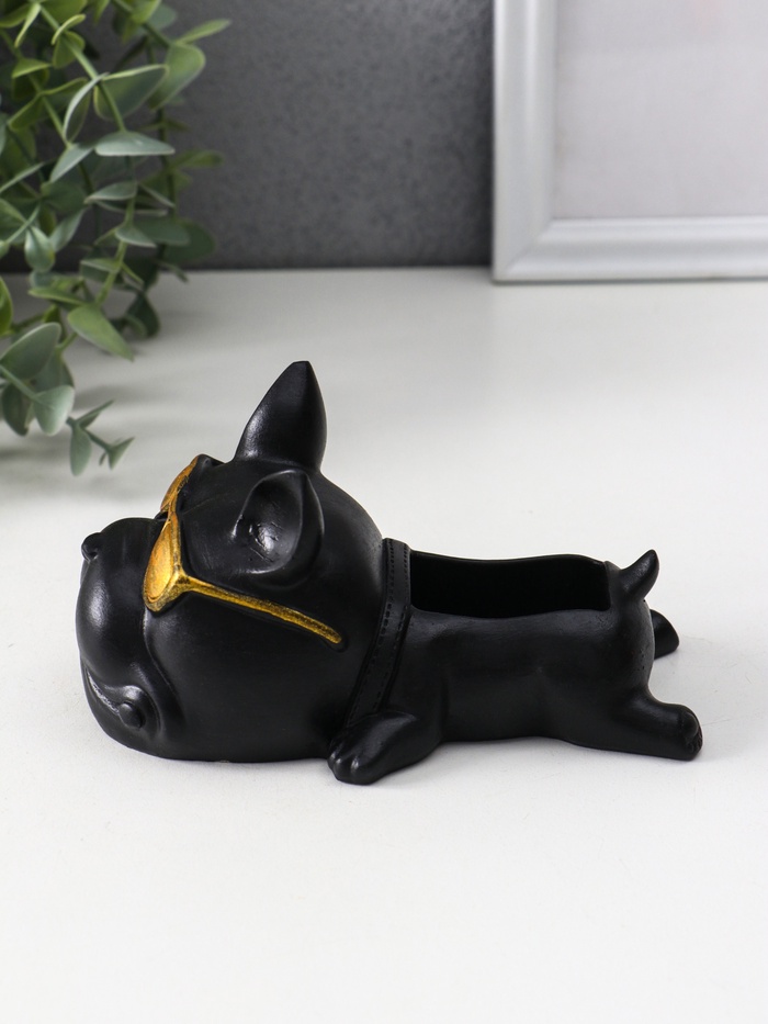 Подставка для мелочей «Французский бульдог в очках», 7×14×8.5 см, чёрная 5 фото