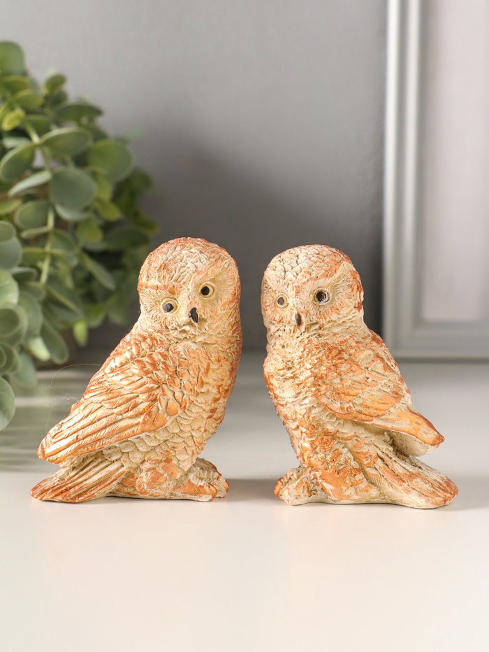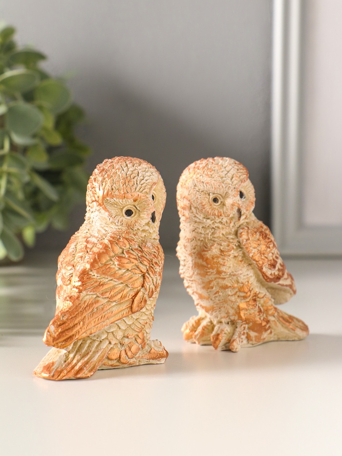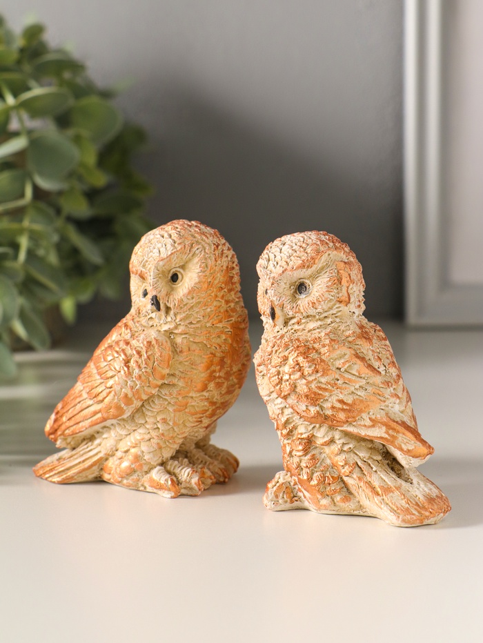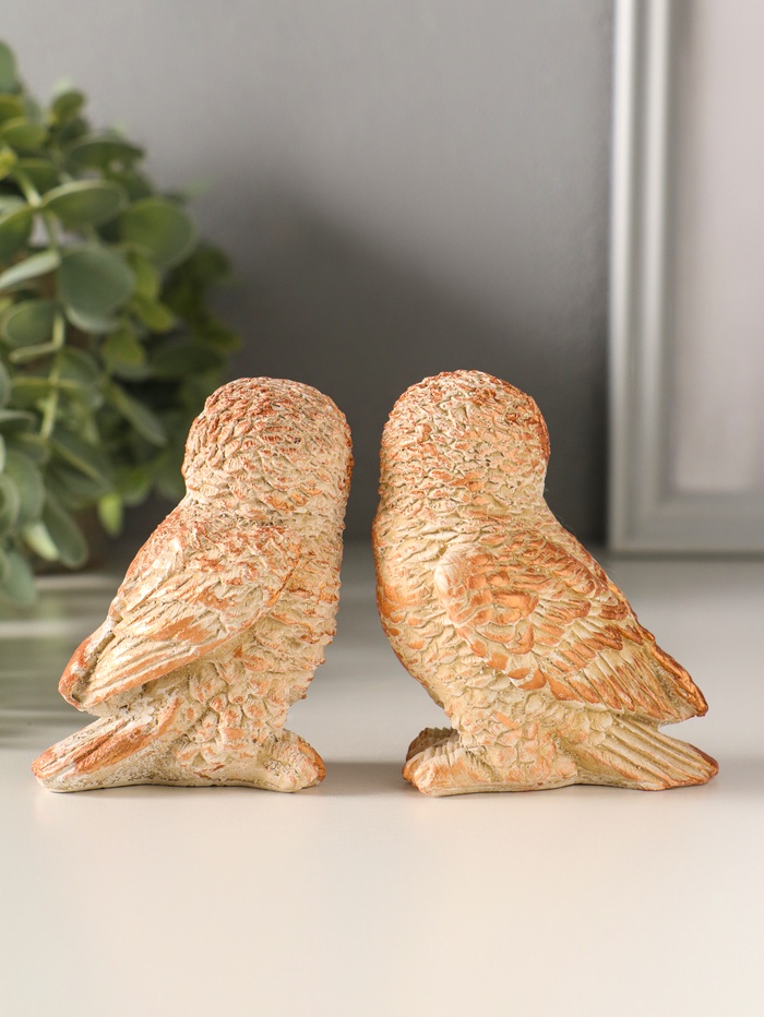 Набор фигурок 2 шт. «Два совенка», 8×8 см, бежевый 4 фото