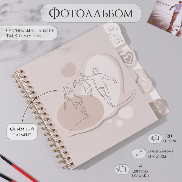 Фотоальбом на спирали 20 листов «Мы семья», объёмный элемент и 4 вкладки, 24×24 см 9 фото