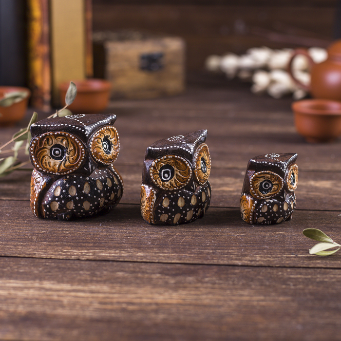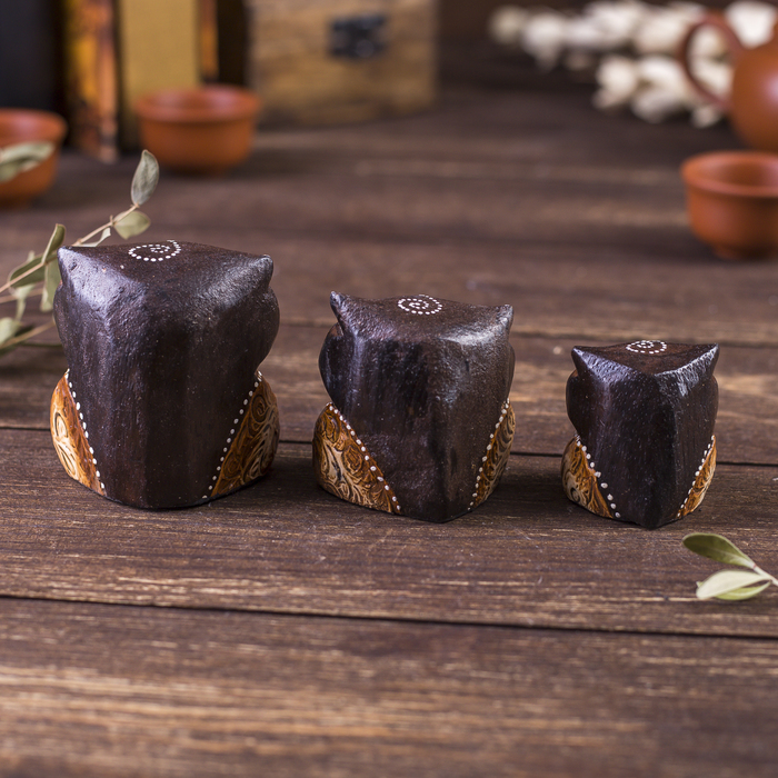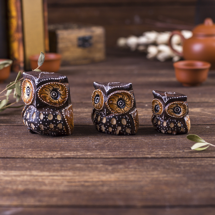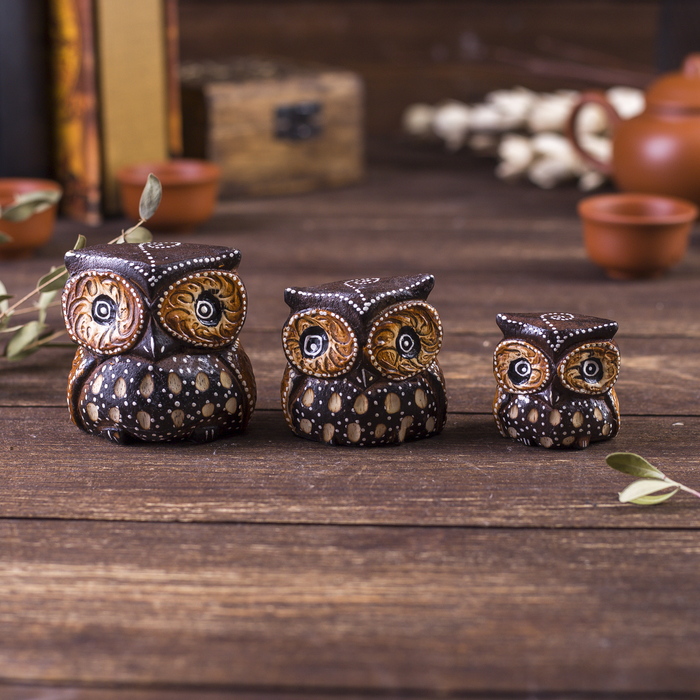 Сувенирный набор «Совы с точечным узором», 3 шт., 6×14×7 см, дерево 7 фото