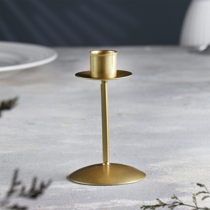 Металлический подсвечник на 1 свечу «Ирада», d=2 см, с золотом 9×9×19.5 см 4 фото