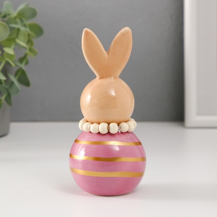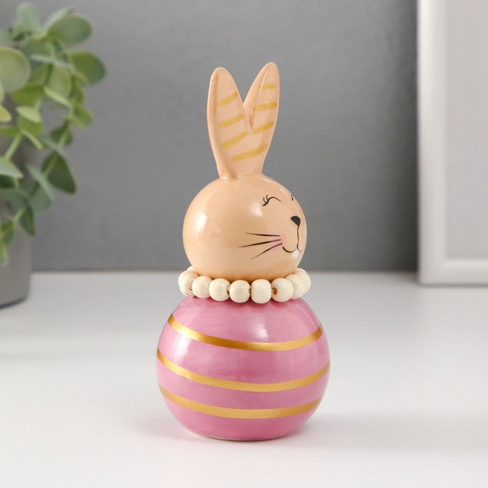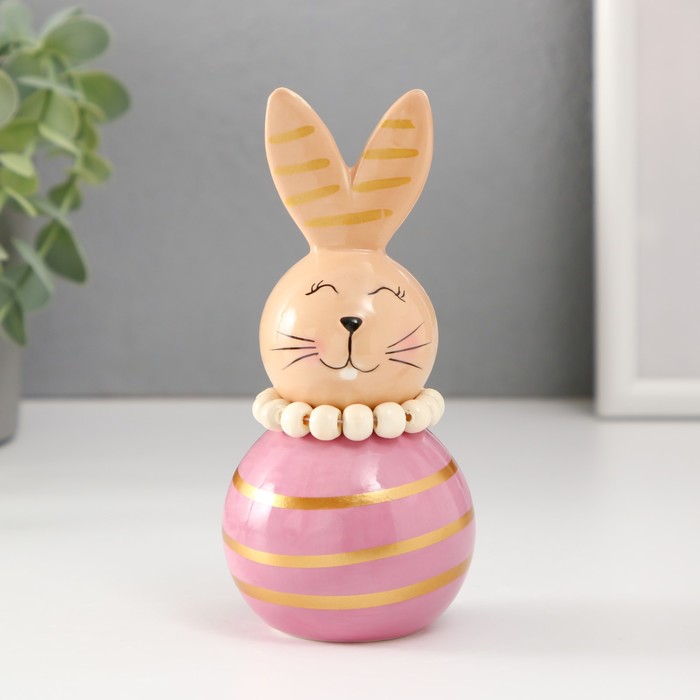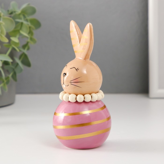 Фигурка керамика «Зайка-неваляшка с полосками», бежево-сиреневый, 6.3×6.3×13.3 см 4 фото