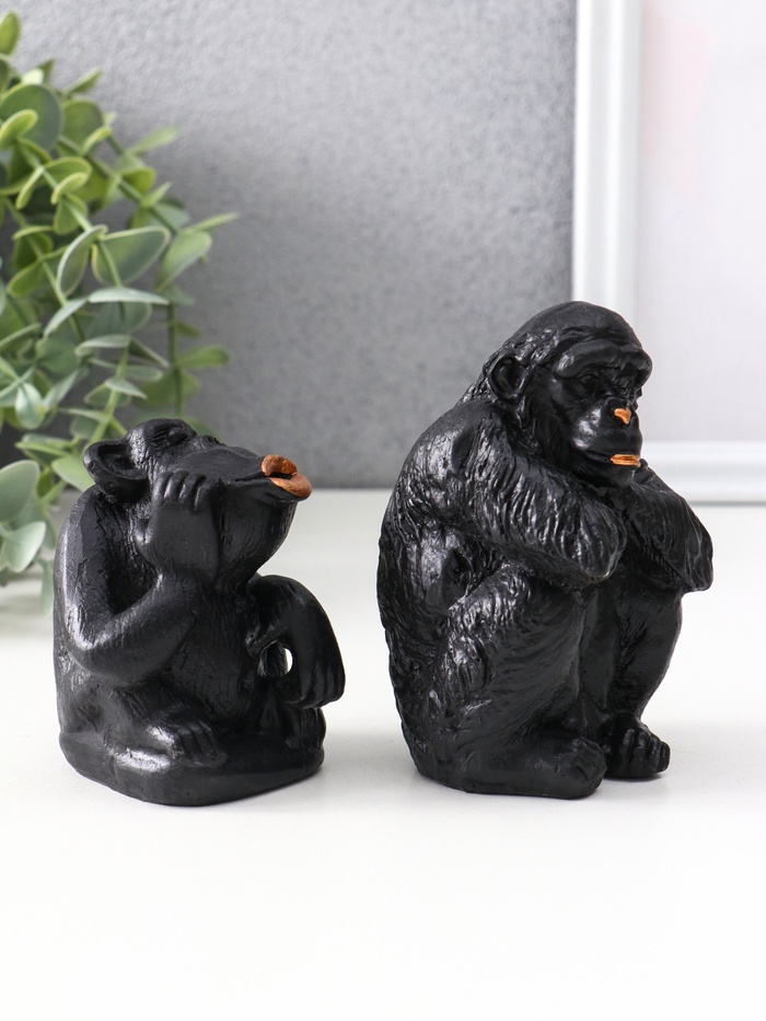 Набор фигурок «Обезьяны», 2 шт., 6.5×6.5×10 см, 6.5×5.5×7.5 см, чёрный 4 фото