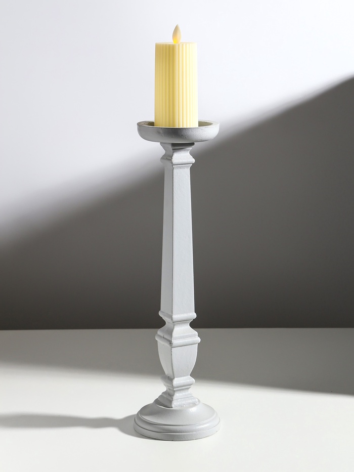 Деревянный подсвечник на 1 свечу «Пантеон», св. серый, 11.5×11.5×39.5 см 5 фото