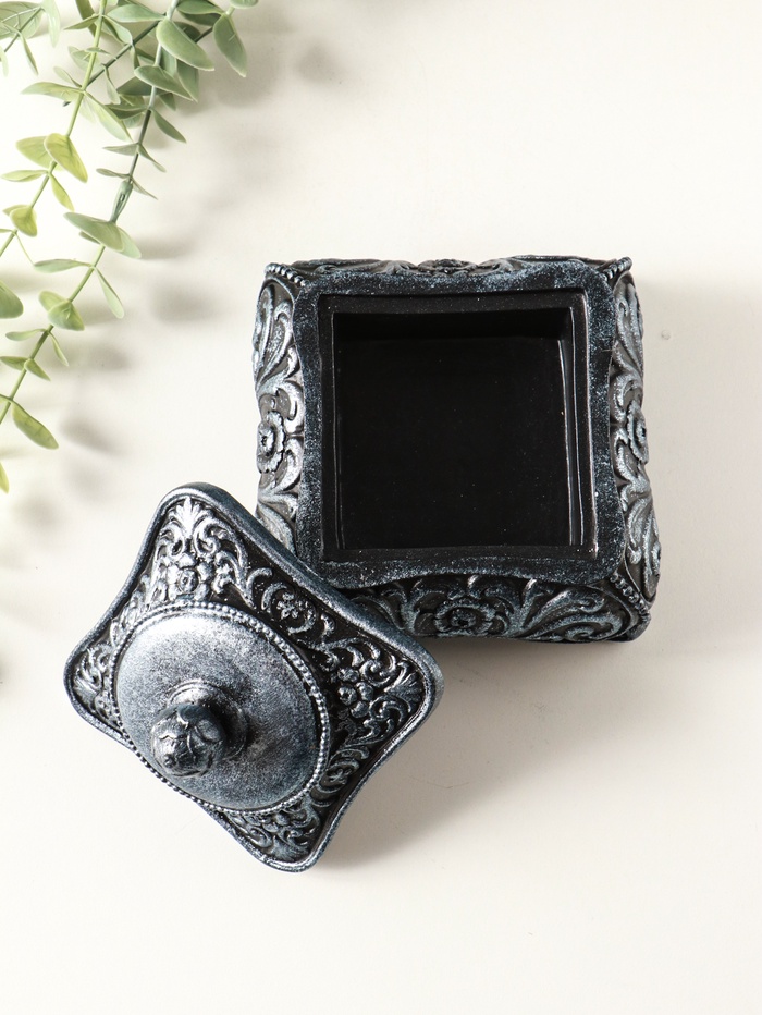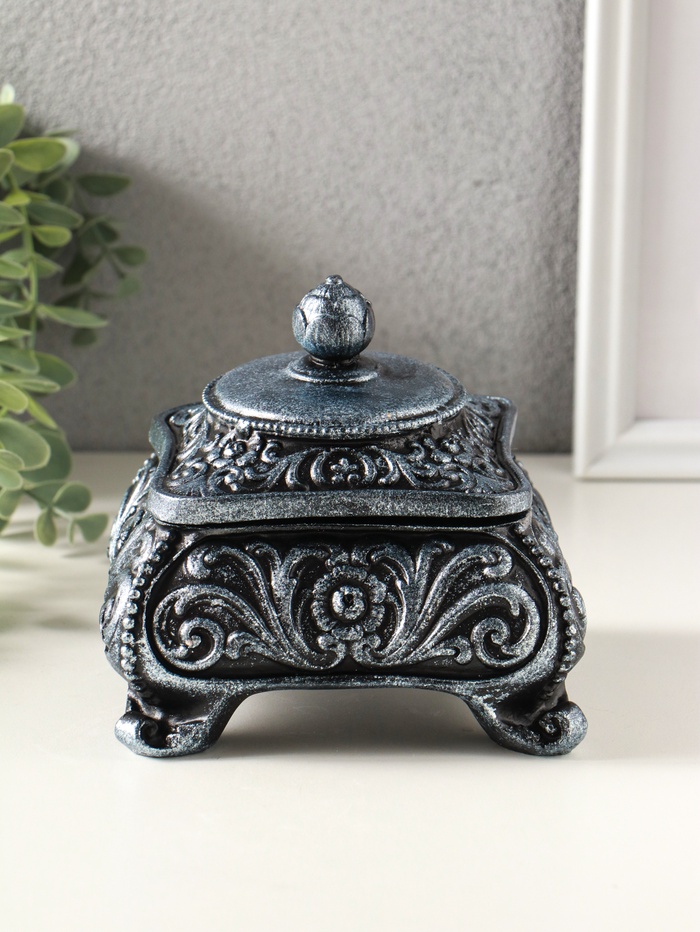 Шкатулка для украшений «Виктория» 11×12 см, гипс, состаренное серебро 3 фото